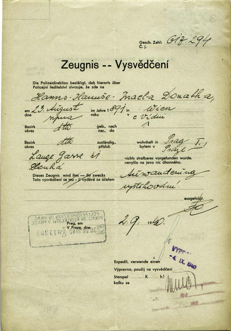 Donath Hans: Vysvědčení zachovalosti