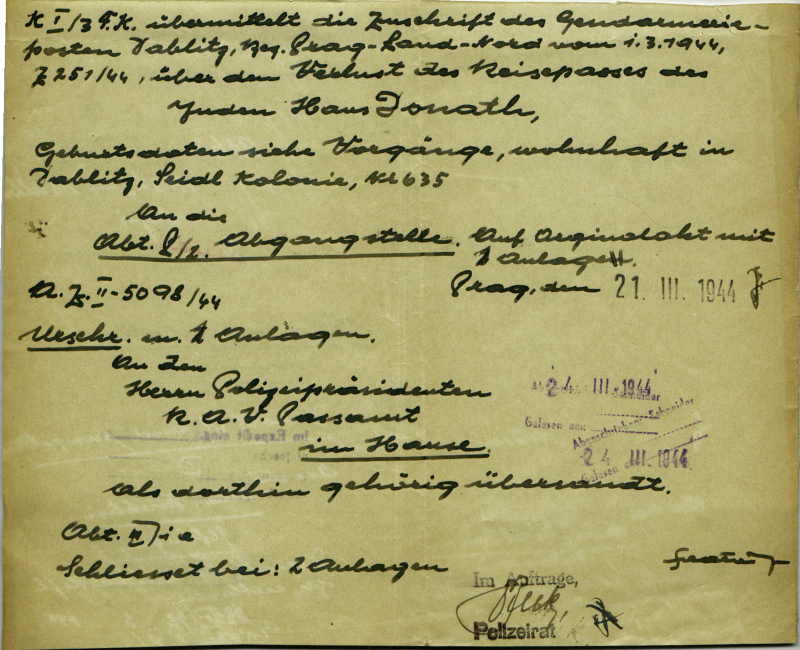 Donath Hans: Šetření ve věci ztráty cestovního pasu