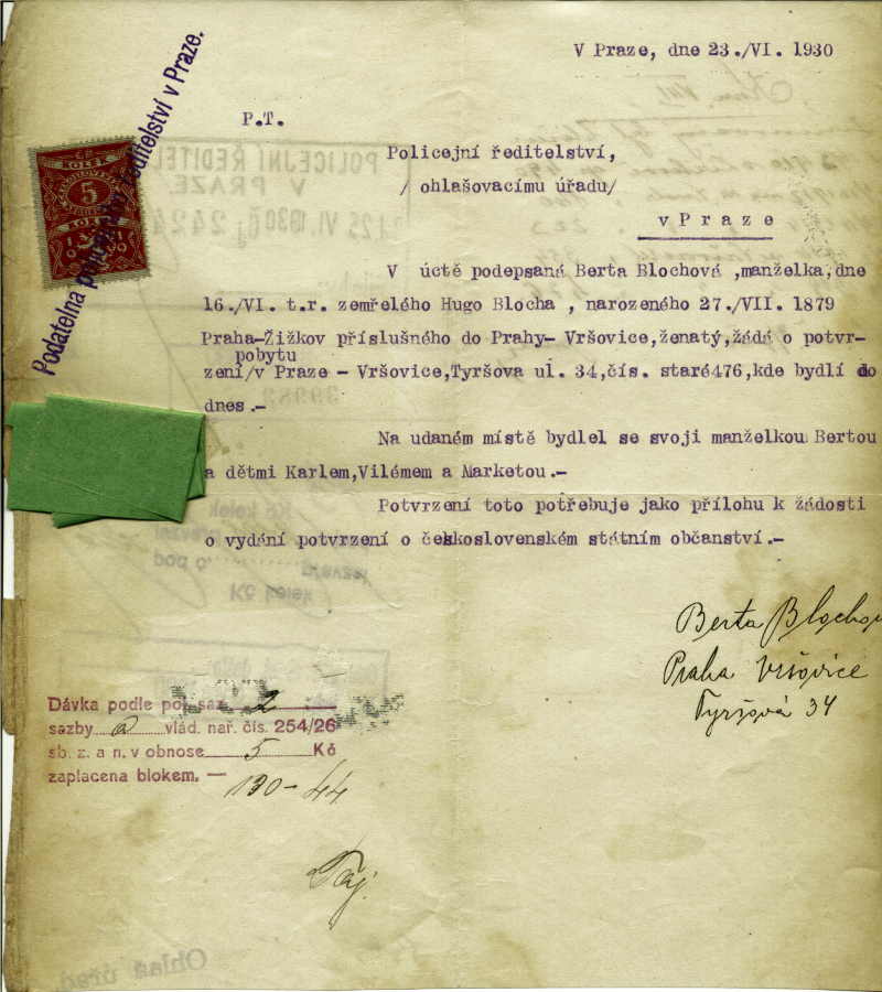 National archives Prague > Police Directorate Prague > 1931-1940 > B > Blochová Berta