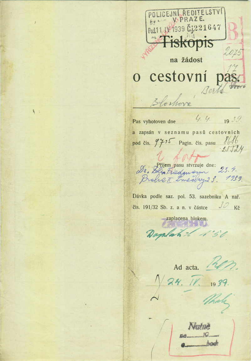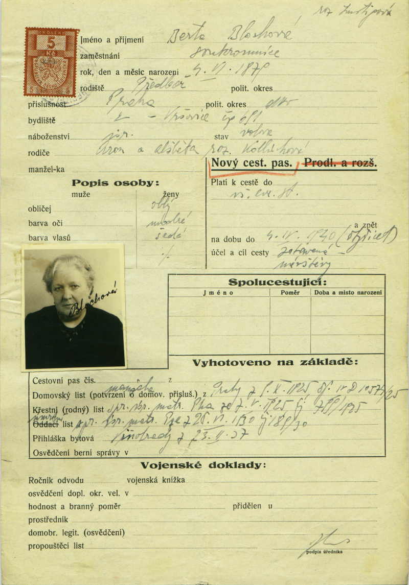 Blochová Berta: Passport application