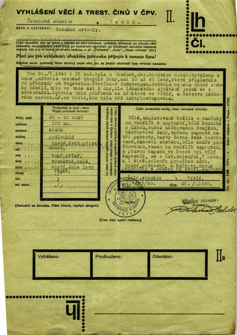 Baumová Marie: Šetření o totožnosti zemřelé