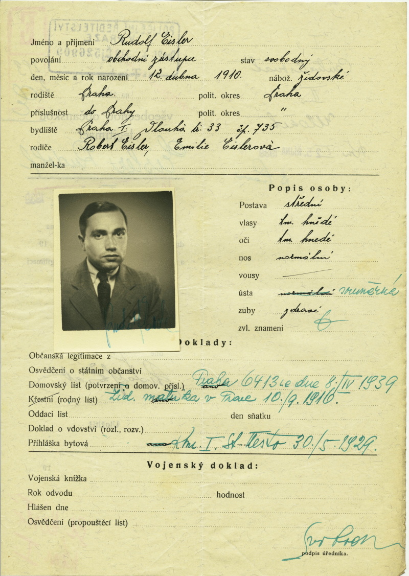 National archives Prague > Police Directorate Prague > 1931-1940 > E > Eisler Rudolf