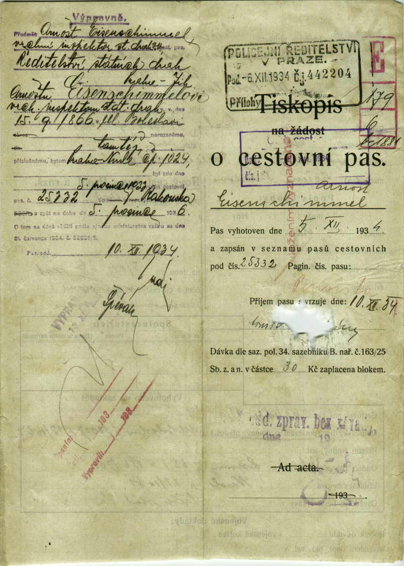 National archives Prague > Police Directorate Prague > 1931-1940 > E > Eisenschimmel Ernst