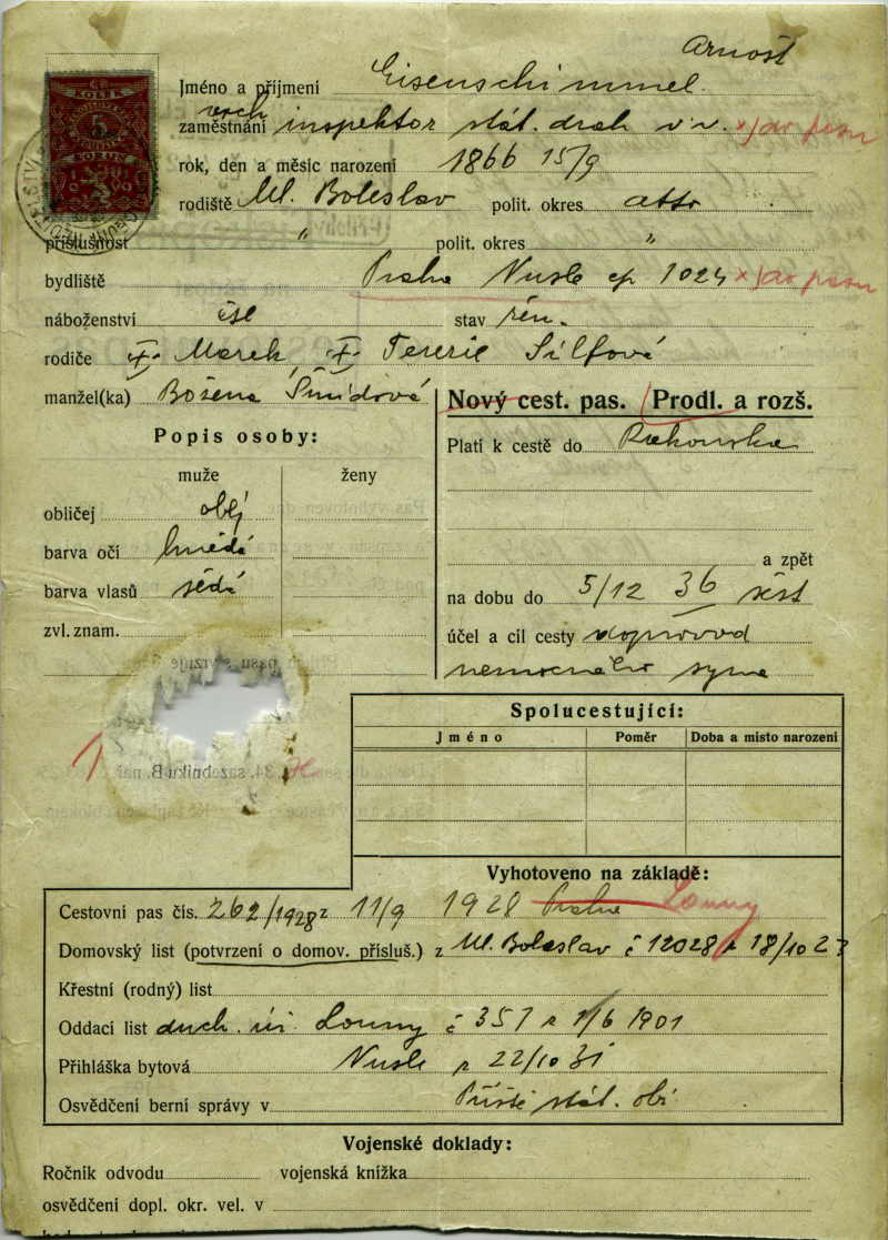 Eisenschimmel Ernst: Žádost o prodloužení a rozšíření cestovního pasu
