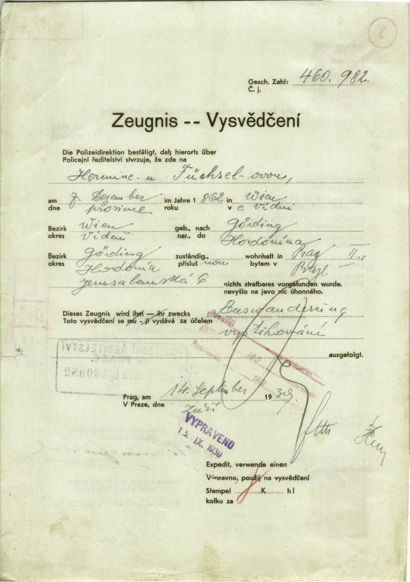 National archives Prague > Police Directorate Prague > 1931-1940 > F > Füchselová Hermine
