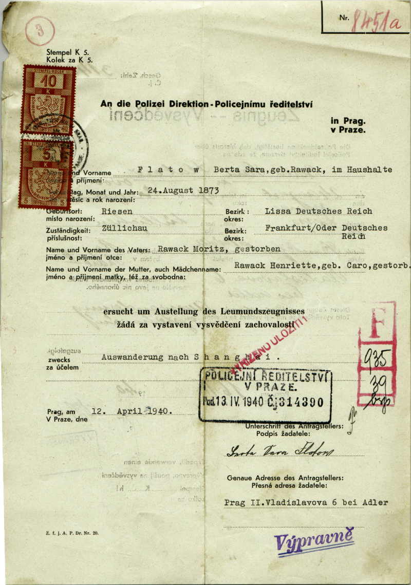 National archives Prague > Police Directorate Prague > 1931-1940 > F > Flatowá Berta Sarah