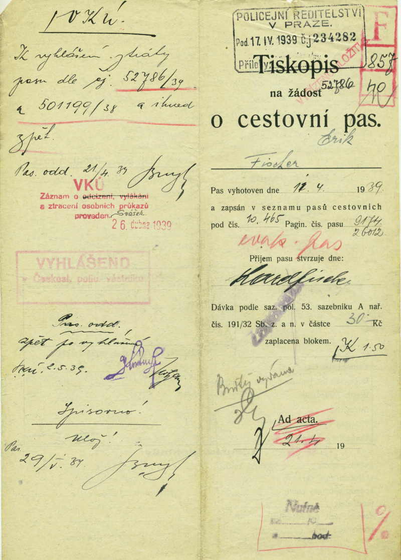 Fischer Erich: Passport application
