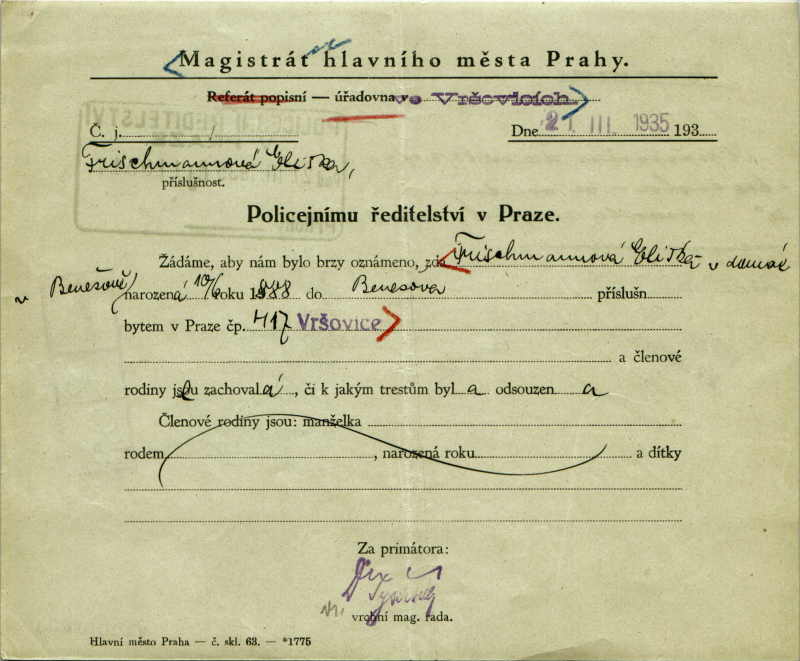 National archives Prague > Police Directorate Prague > 1931-1940 > F > Frischmannová Alžběta