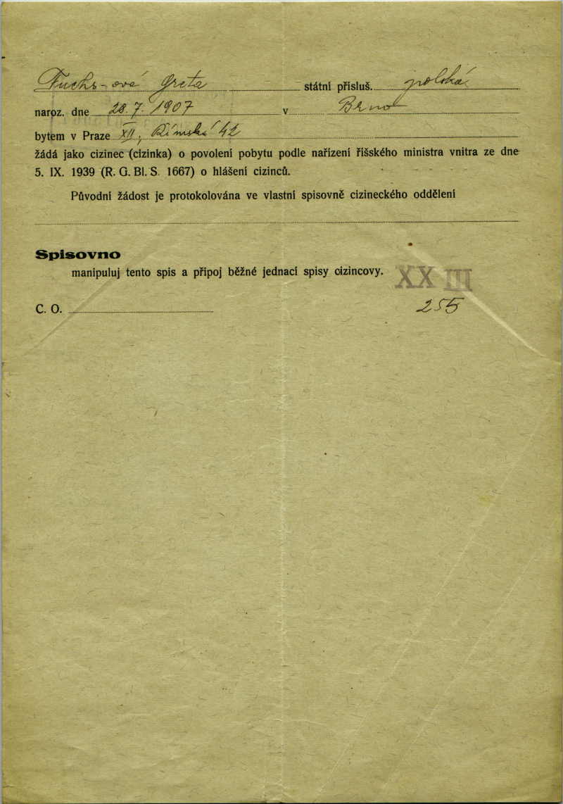Fuchsová Grete: Řízení ve věci povolení pobytu