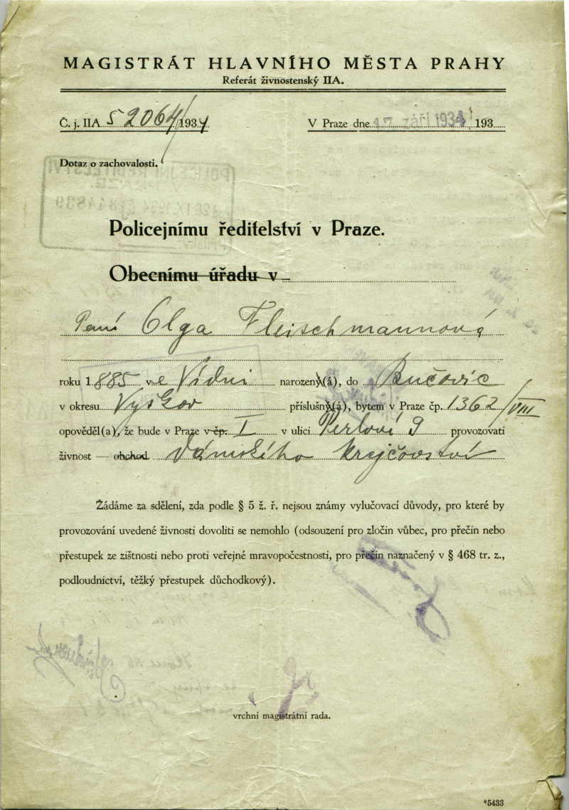 National archives Prague > Police Directorate Prague > 1931-1940 > F > Fleischmannová Olga