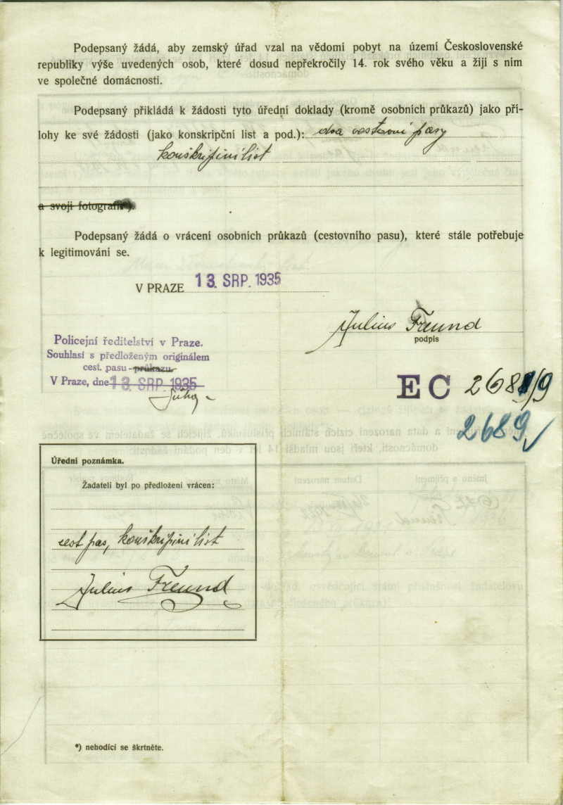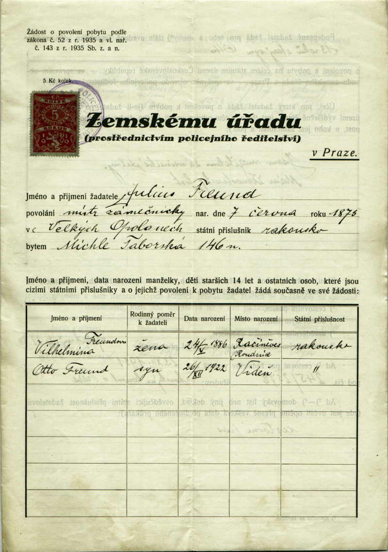 National archives Prague > Police Directorate Prague > 1931-1940 > F > Freund Julius