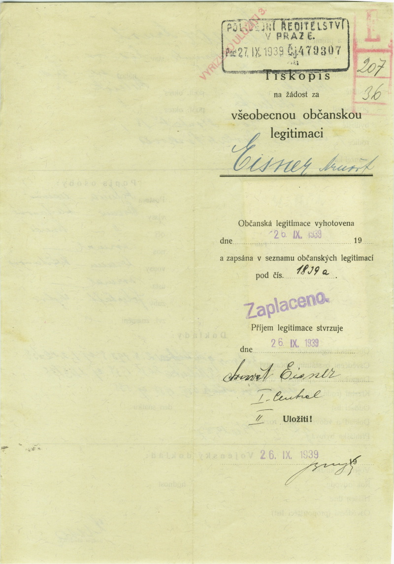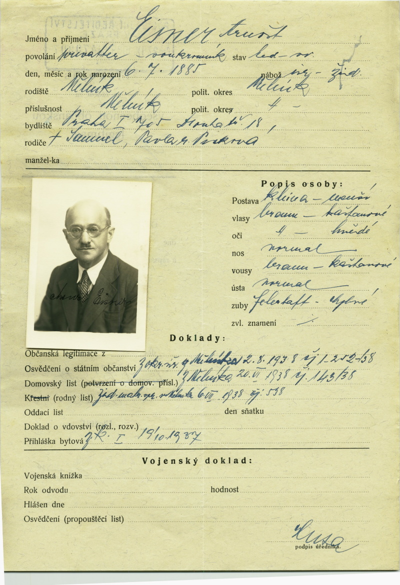Eisner Arnošt: Identity card application