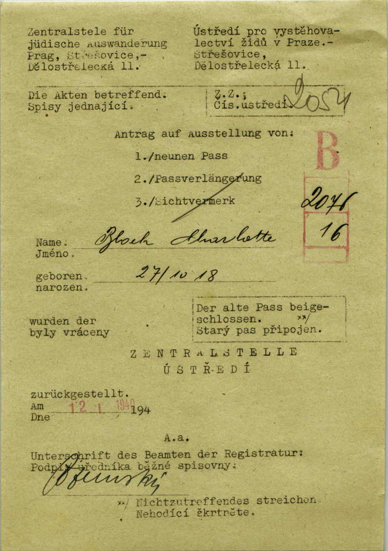Blochova Charlota: Passport application