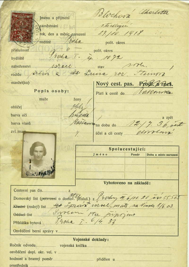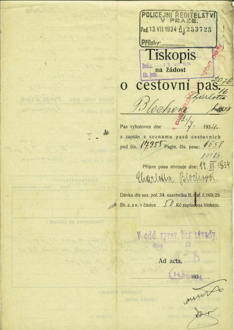 National archives Prague > Police Directorate Prague > 1931-1940 > B > Blochova Charlota