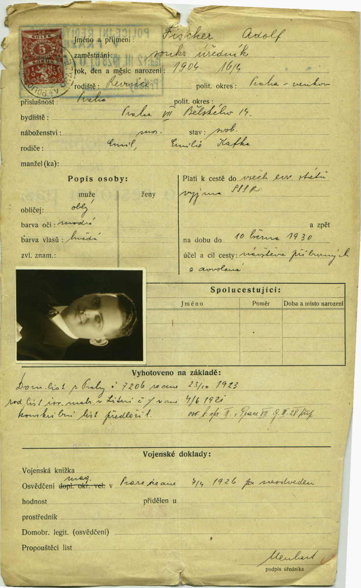 National archives Prague > Police Directorate Prague > 1931-1940 > F > Fischer Adolf Artur