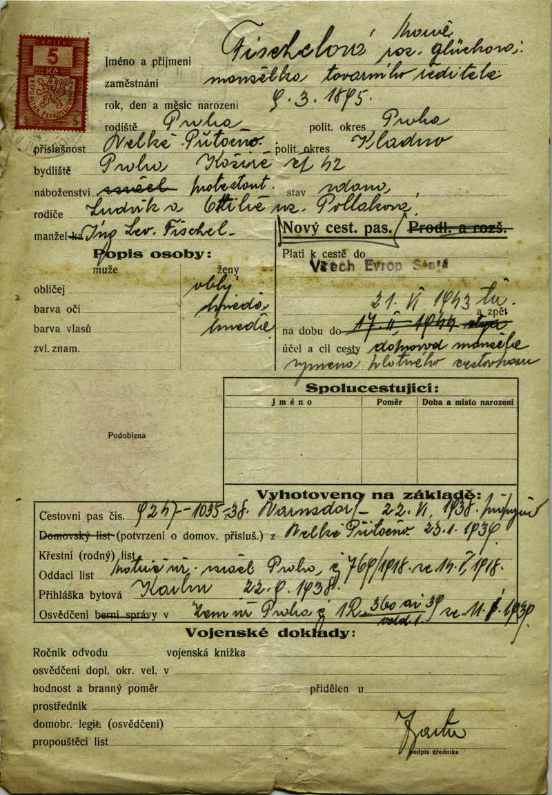 Fischelová Marie: Passport application