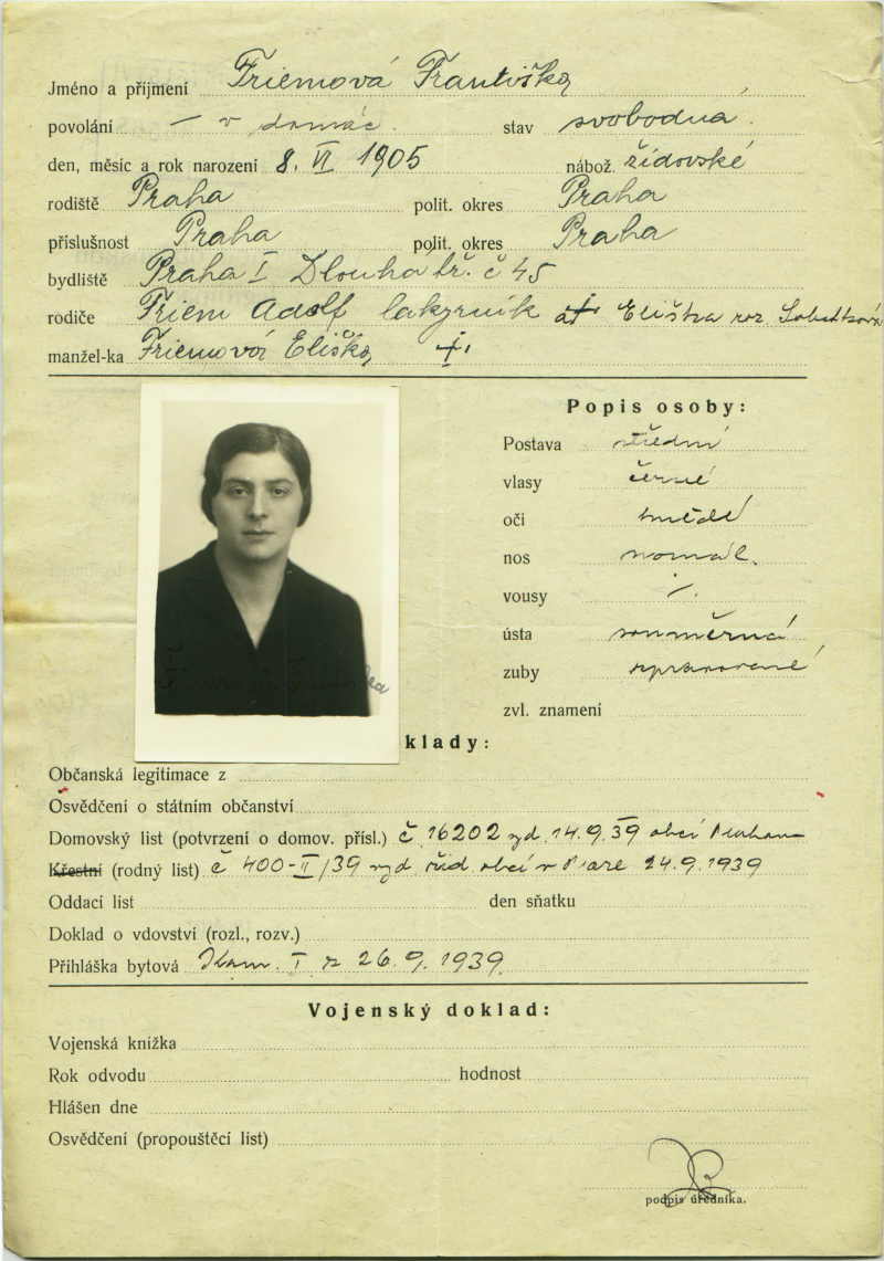 National archives Prague > Police Directorate Prague > 1931-1940 > F > Friemová Františka