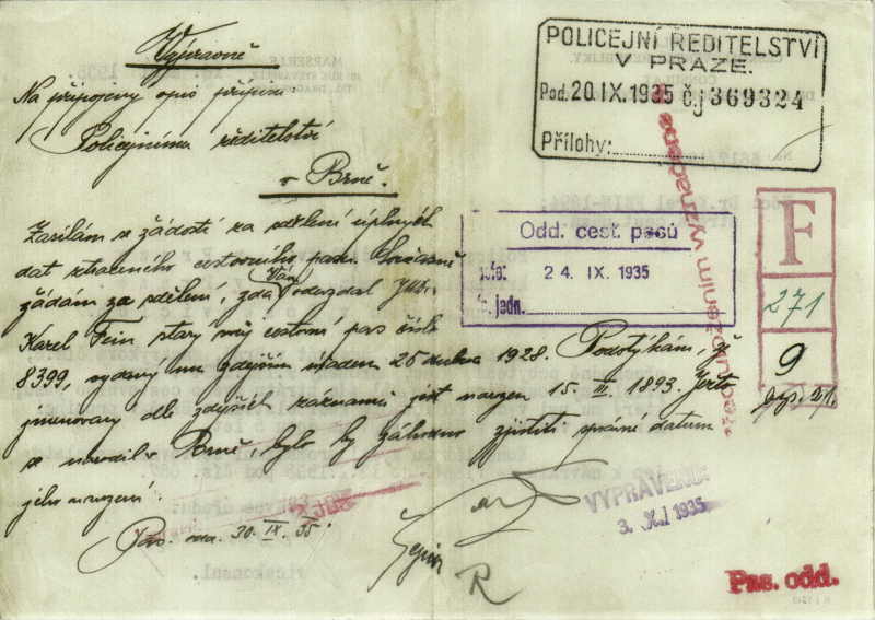 National archives Prague > Police Directorate Prague > 1931-1940 > F > Fein Karel
