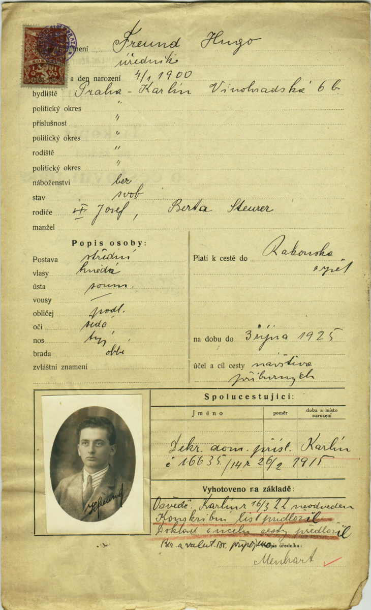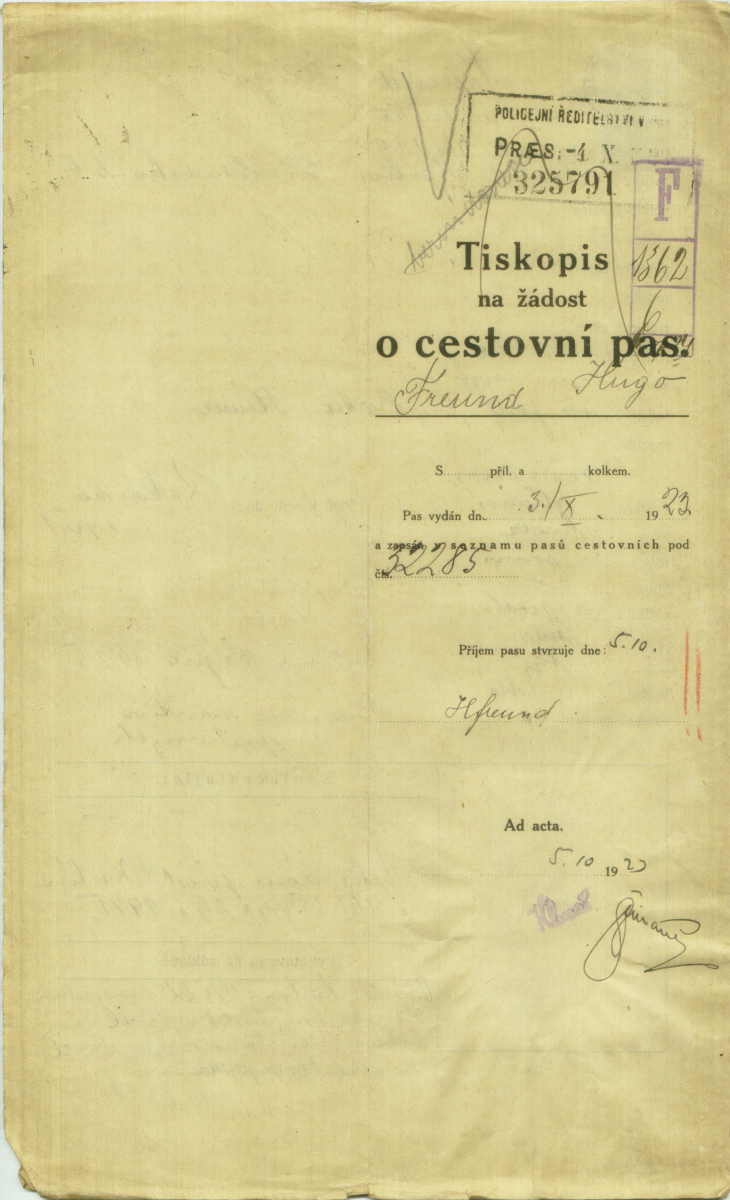 National archives Prague > Police Directorate Prague > 1931-1940 > F > Freund Hugo