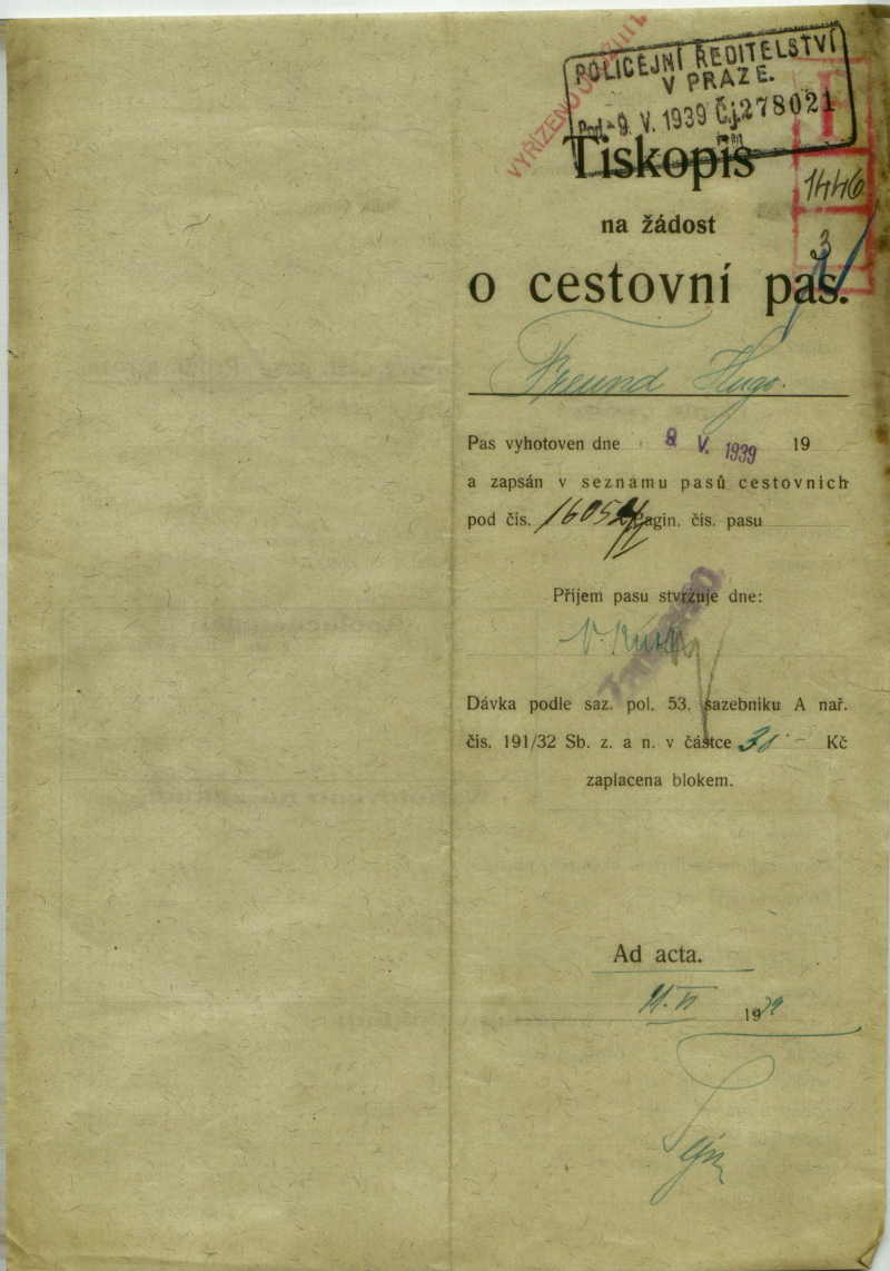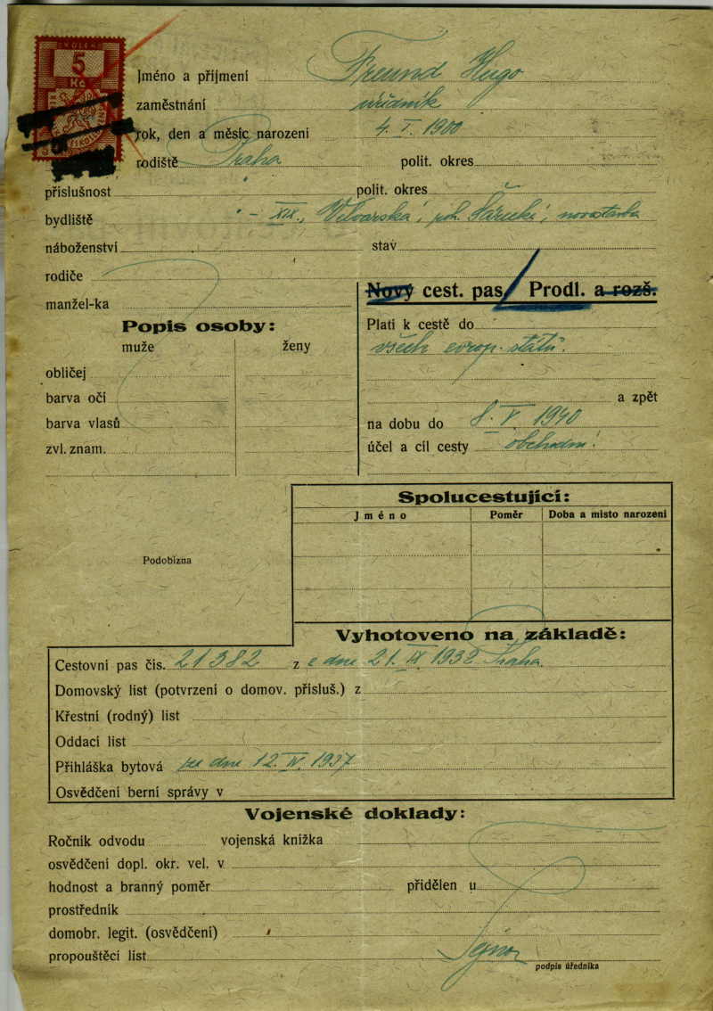 Freund Hugo: Žádost o prodloužení cestovního pasu
