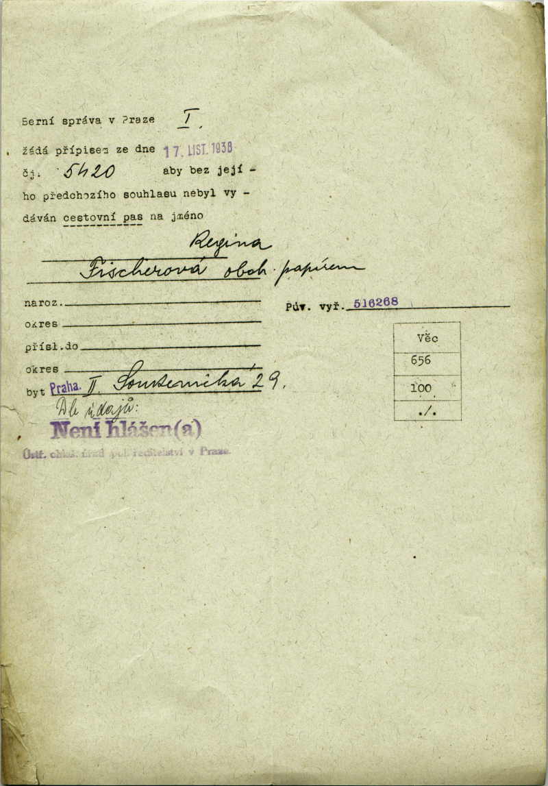 National archives Prague > Police Directorate Prague > 1931-1940 > F > Fischerová Regina