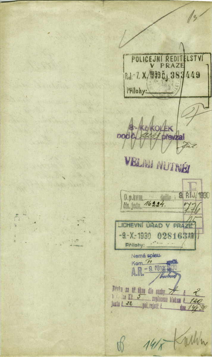 National archives Prague > Police Directorate Prague > 1931-1940 > F > Fischer Vilém