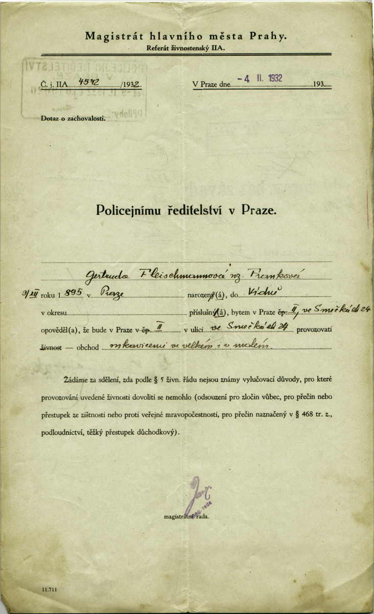 National archives Prague > Police Directorate Prague > 1931-1940 > F > Fleischmannová Gertruda