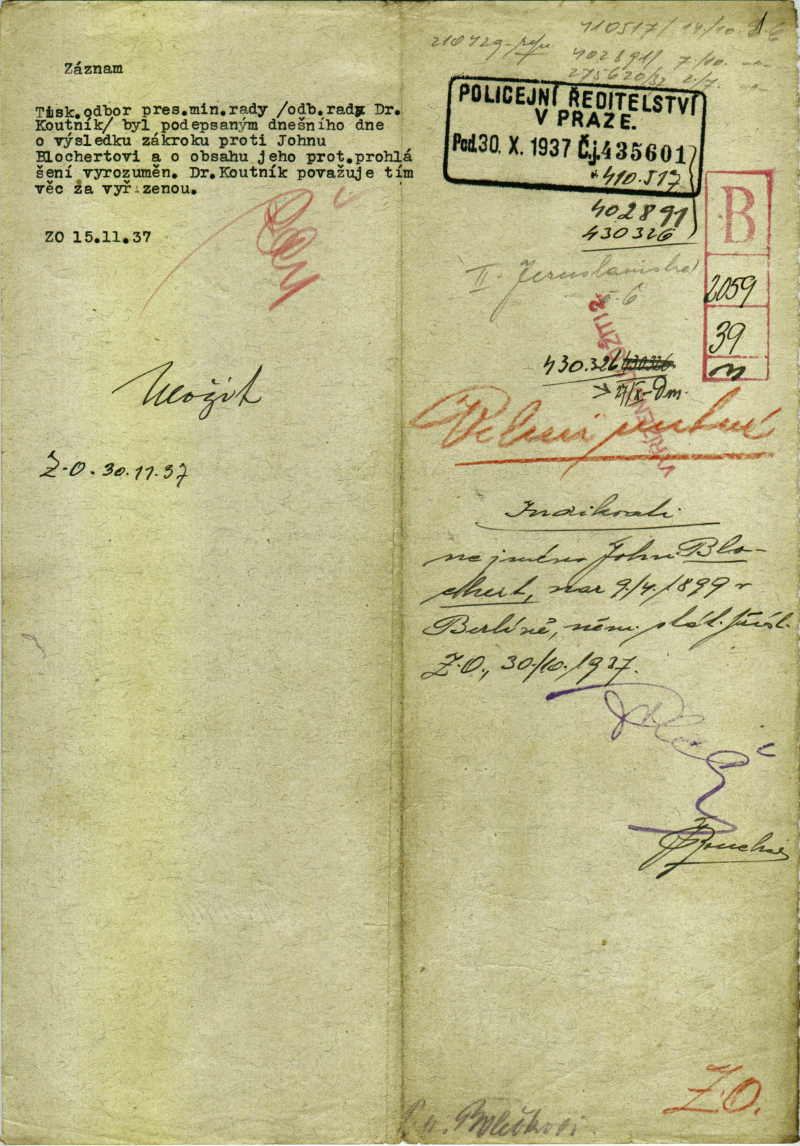 National archives Prague > Police Directorate Prague > 1931-1940 > B > Blochert John