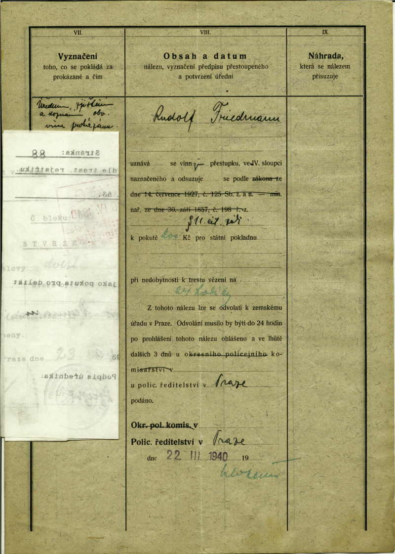 National archives Prague > Police Directorate Prague > 1931-1940 > F > Friedmann Rudolf
