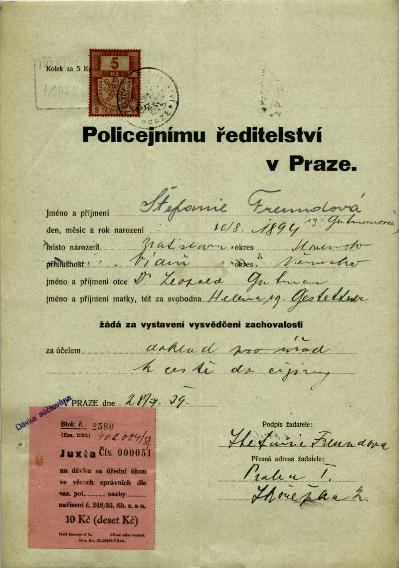 National archives Prague > Police Directorate Prague > 1931-1940 > F > Freundová Stefanie