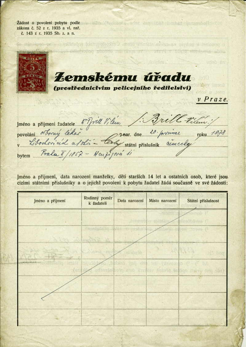 National archives Prague > Police Directorate Prague > 1931-1940 > B > Brill Wilhelm
