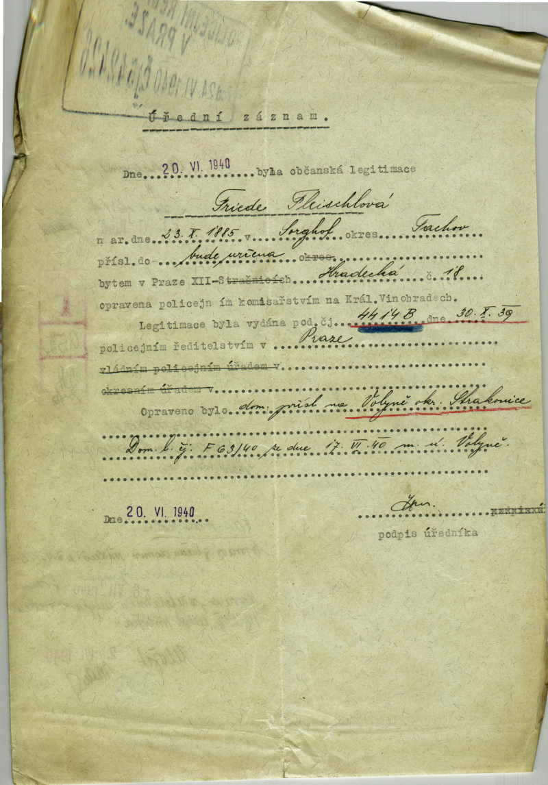 Fleischlová Frieda: Žádost o opravu v občanské legitimaci