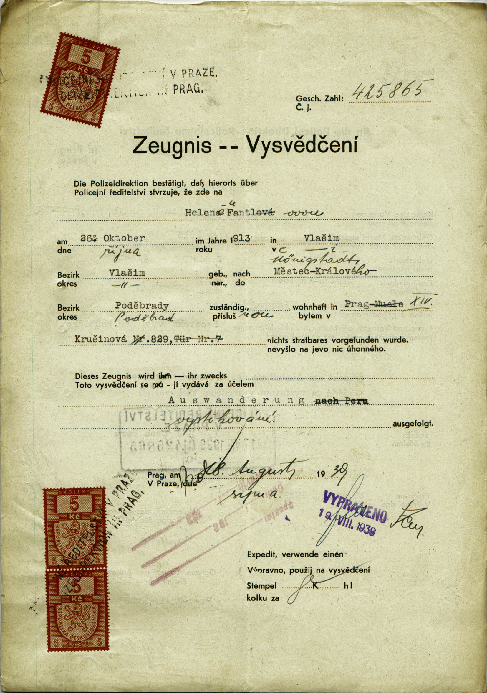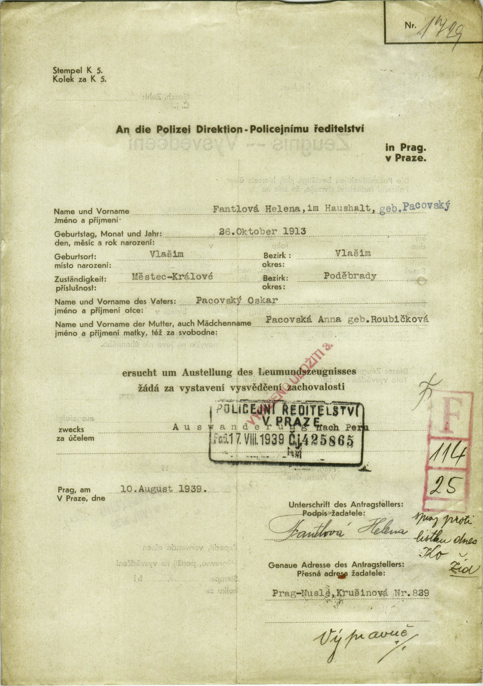 Fantlová Hela: Probity certificate