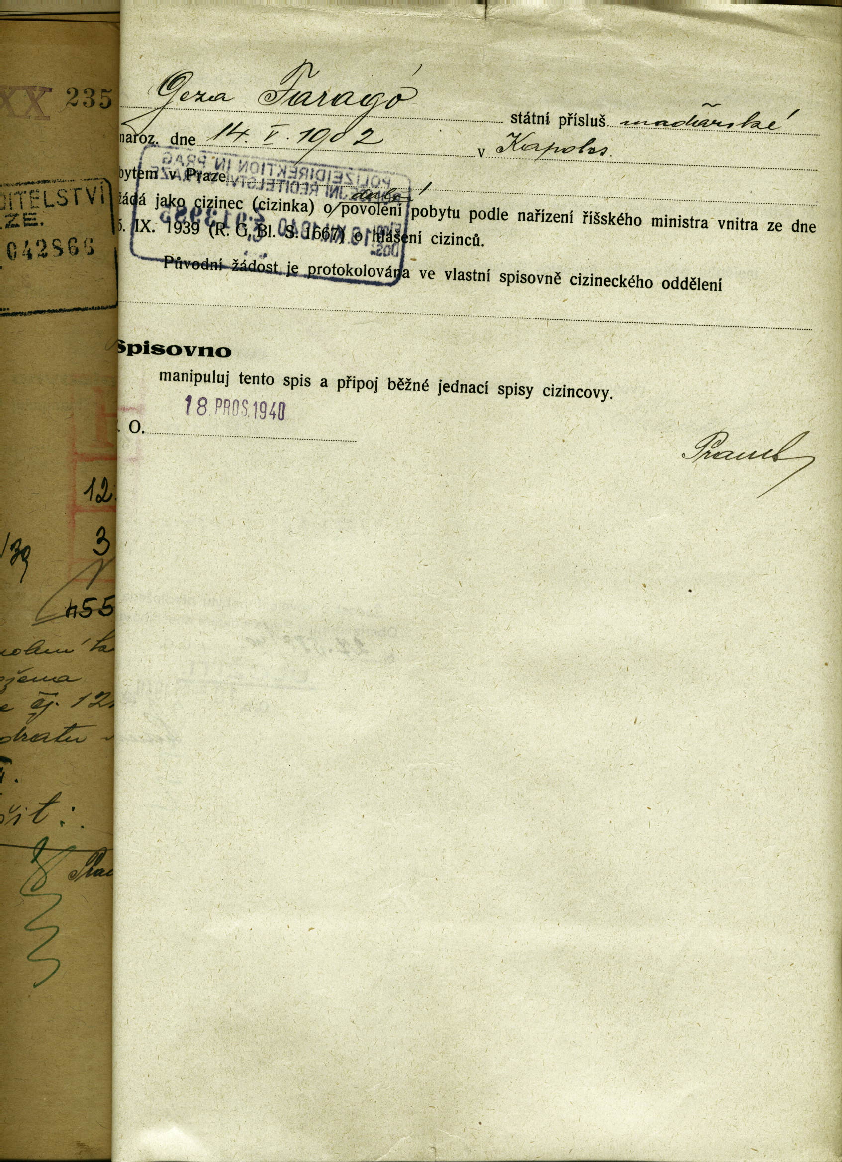 National archives Prague > Police Directorate Prague > 1941-1950 > F > Faragó Géza
