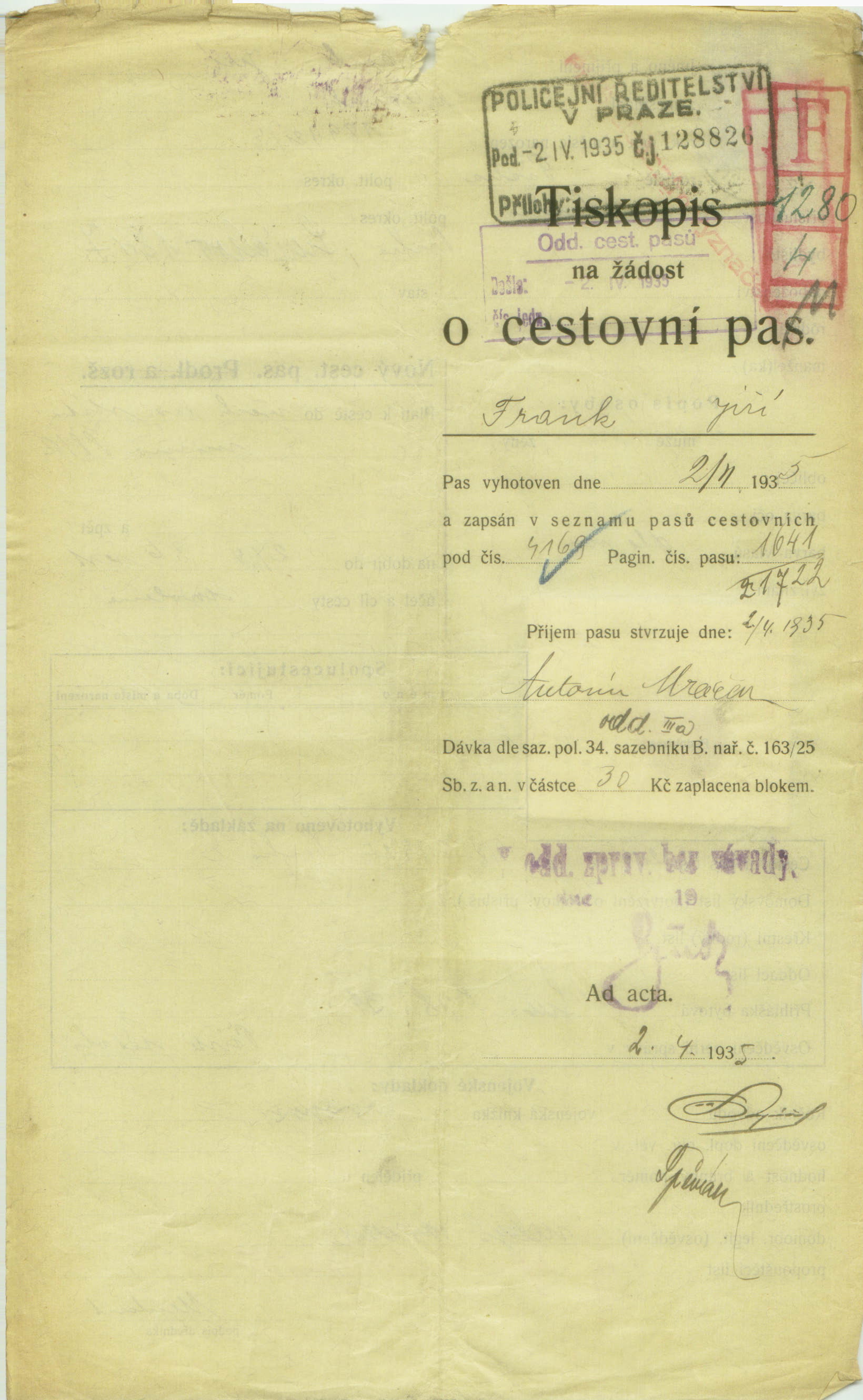 National archives Prague > Police Directorate Prague > 1941-1950 > F > Frank Jiří