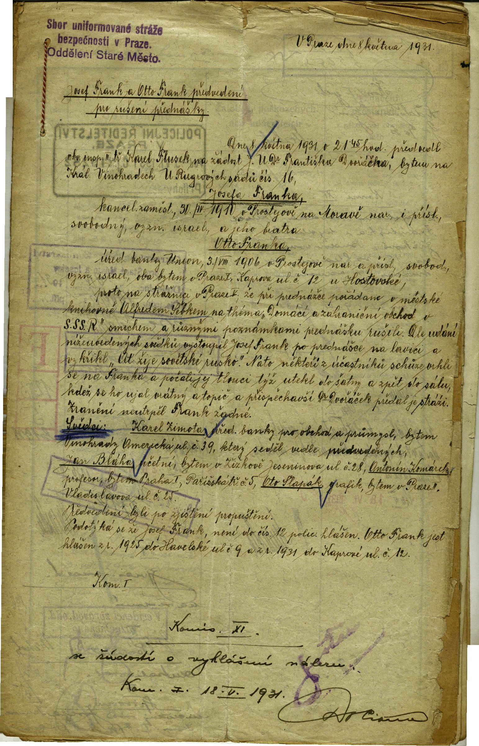 National archives Prague > Police Directorate Prague > 1941-1950 > F > Frank Josef