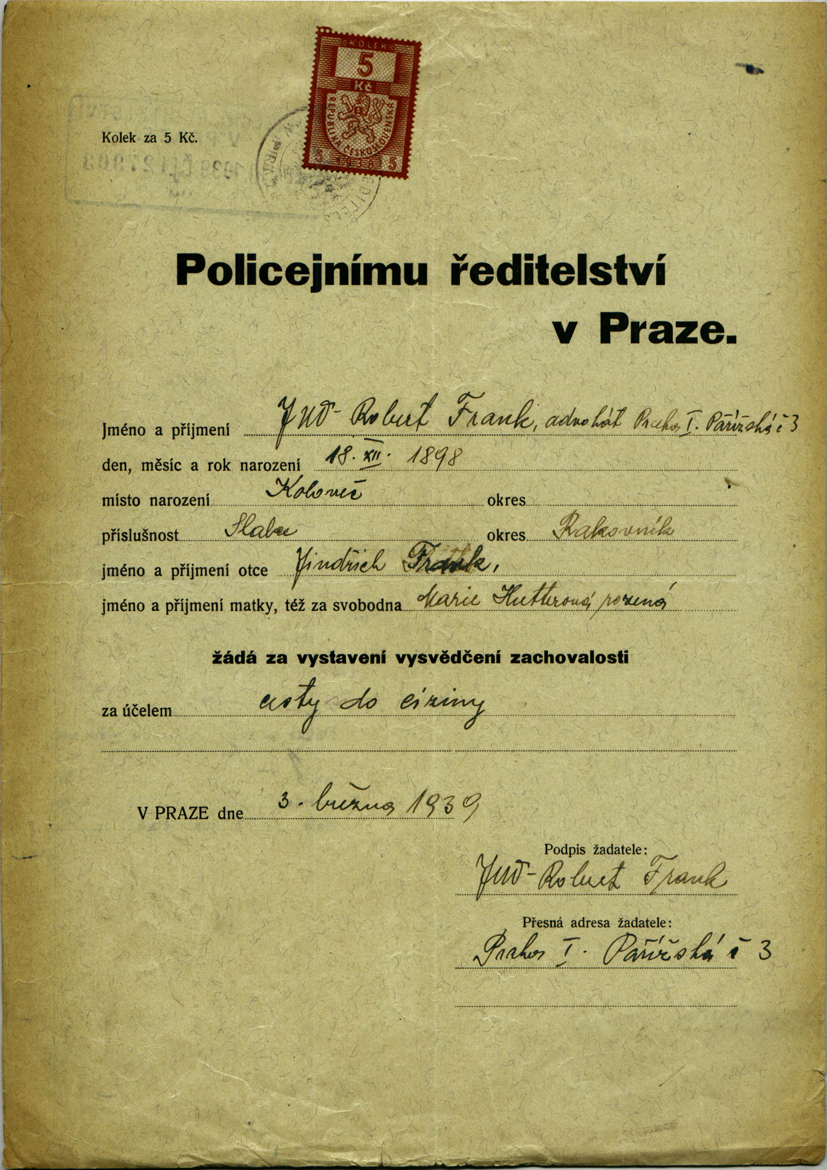 National archives Prague > Police Directorate Prague > 1941-1950 > F > Frank Robert