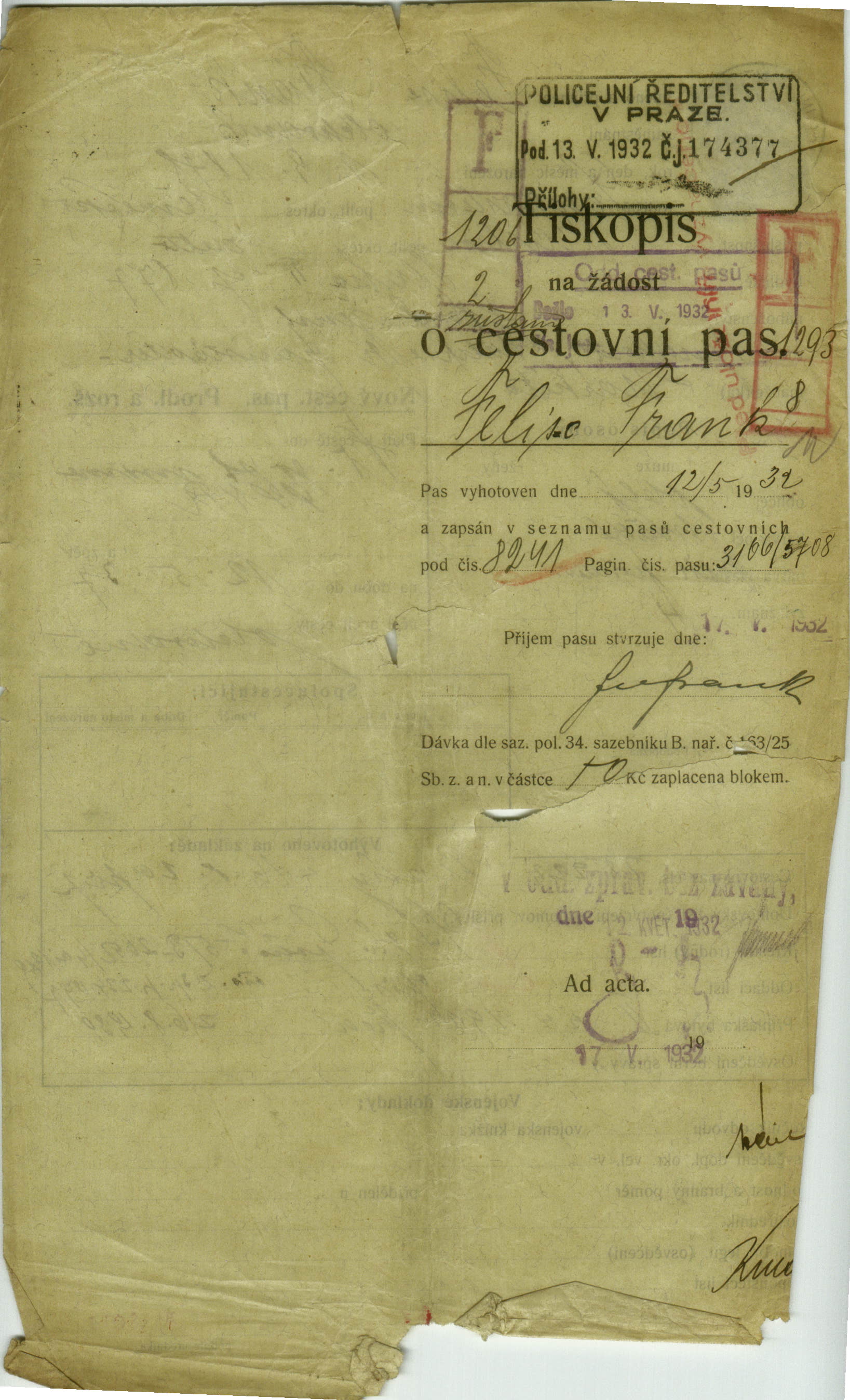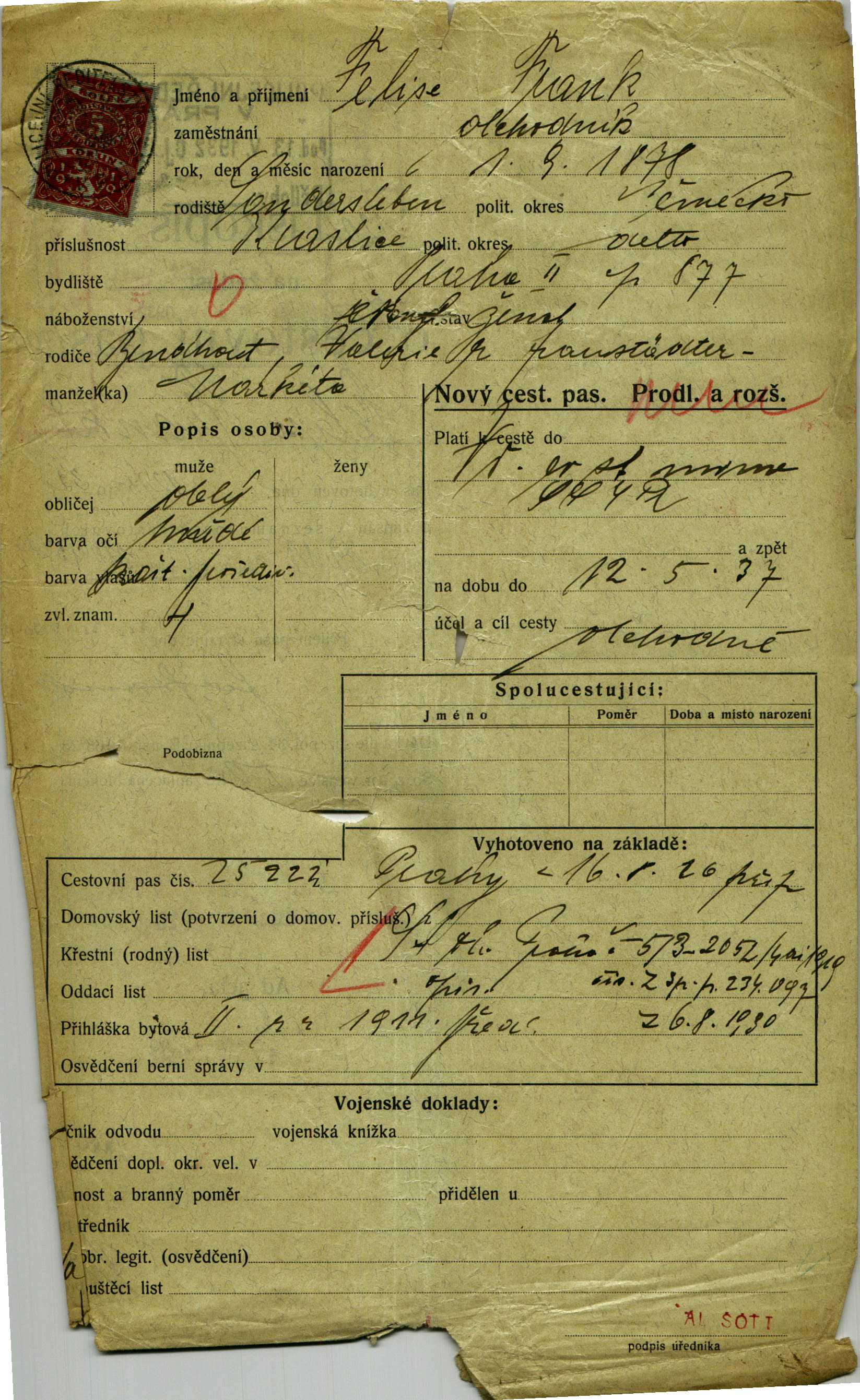 Frank Felix: Passport application