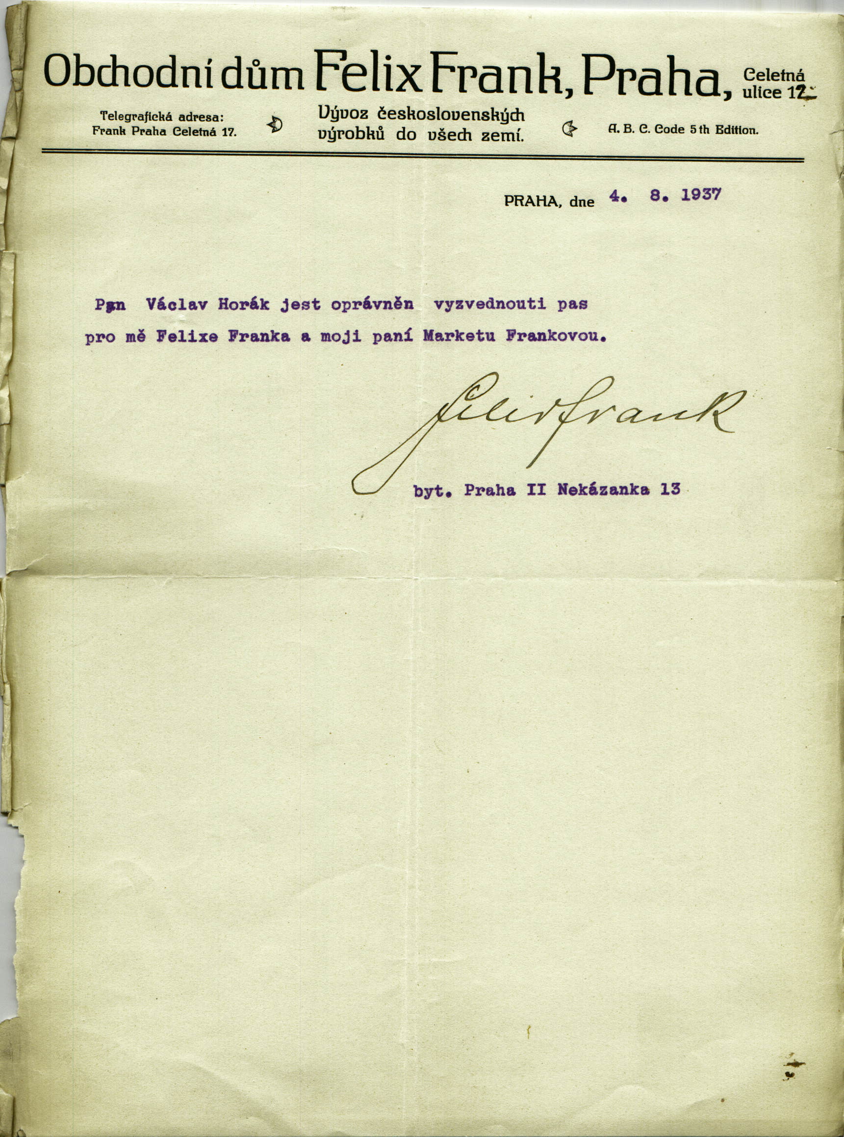 Frank Felix: Plná moc k vyzvednutí cestovního pasu