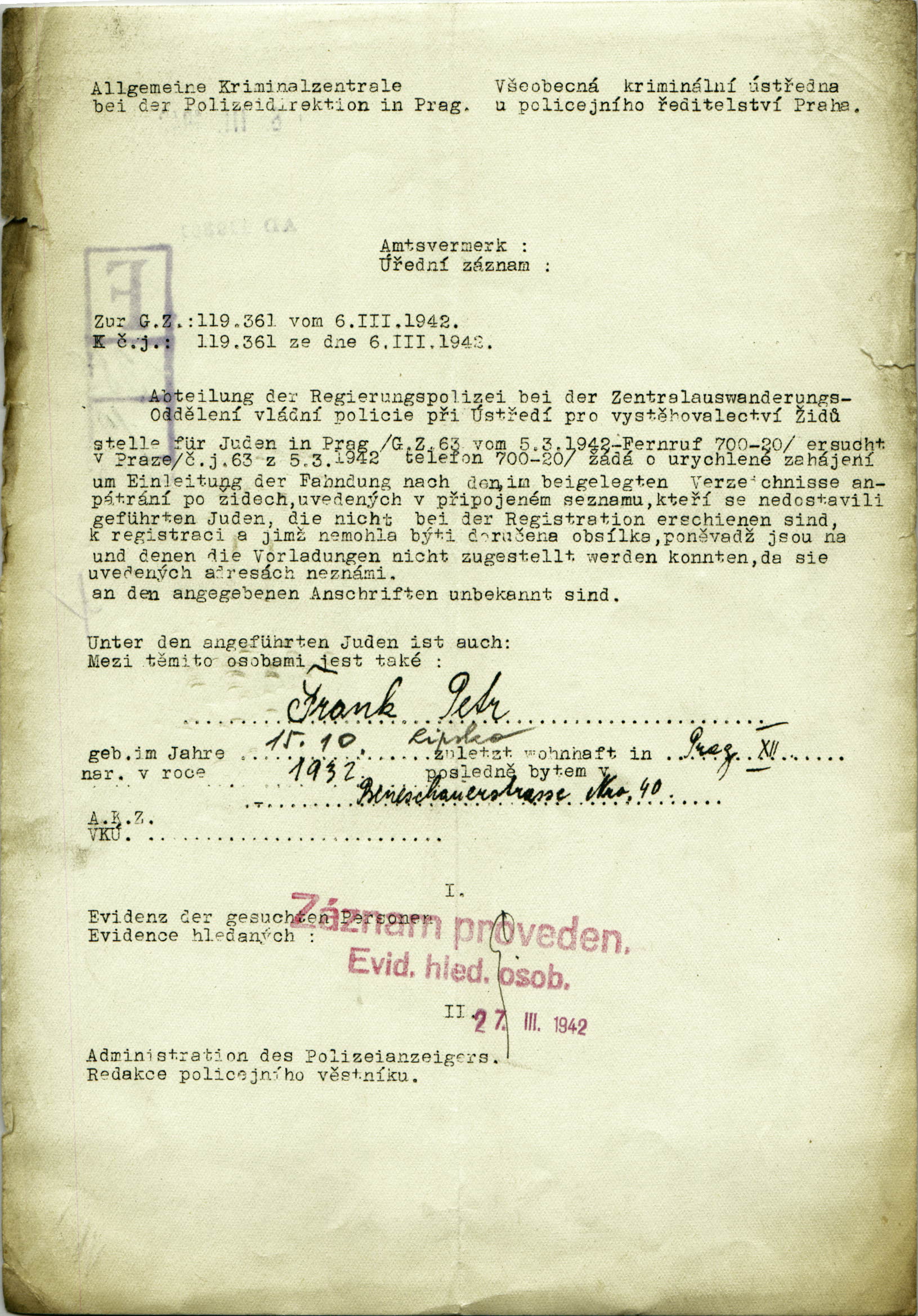 This database contains the names and fates of those who were deported from the territory of today’s Czech Republic, be it their homeland or may they have been deported to the Theresienstadt ghetto before from different european countries. Further, it contains basic information on those men, women and children, most of whom were Roma or Sinti, who died as prisoners of the so-called „Gypsy camp I“ Lety u Písku.