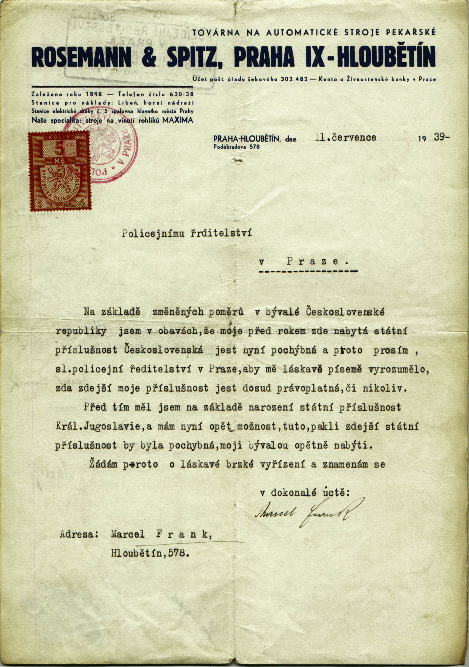 Frank Marcell: Šetření o státní příslušnosti