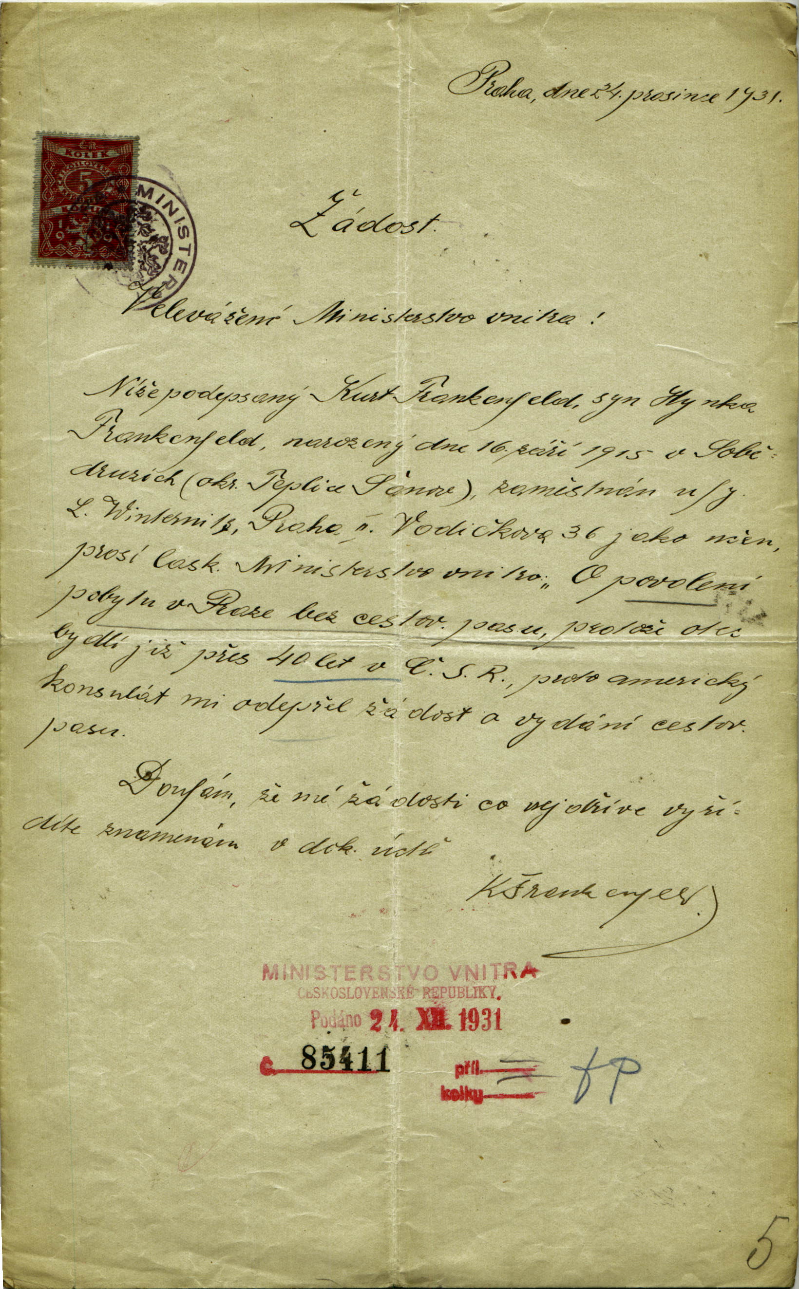 Frankenfeld Kurt: Residence permit application