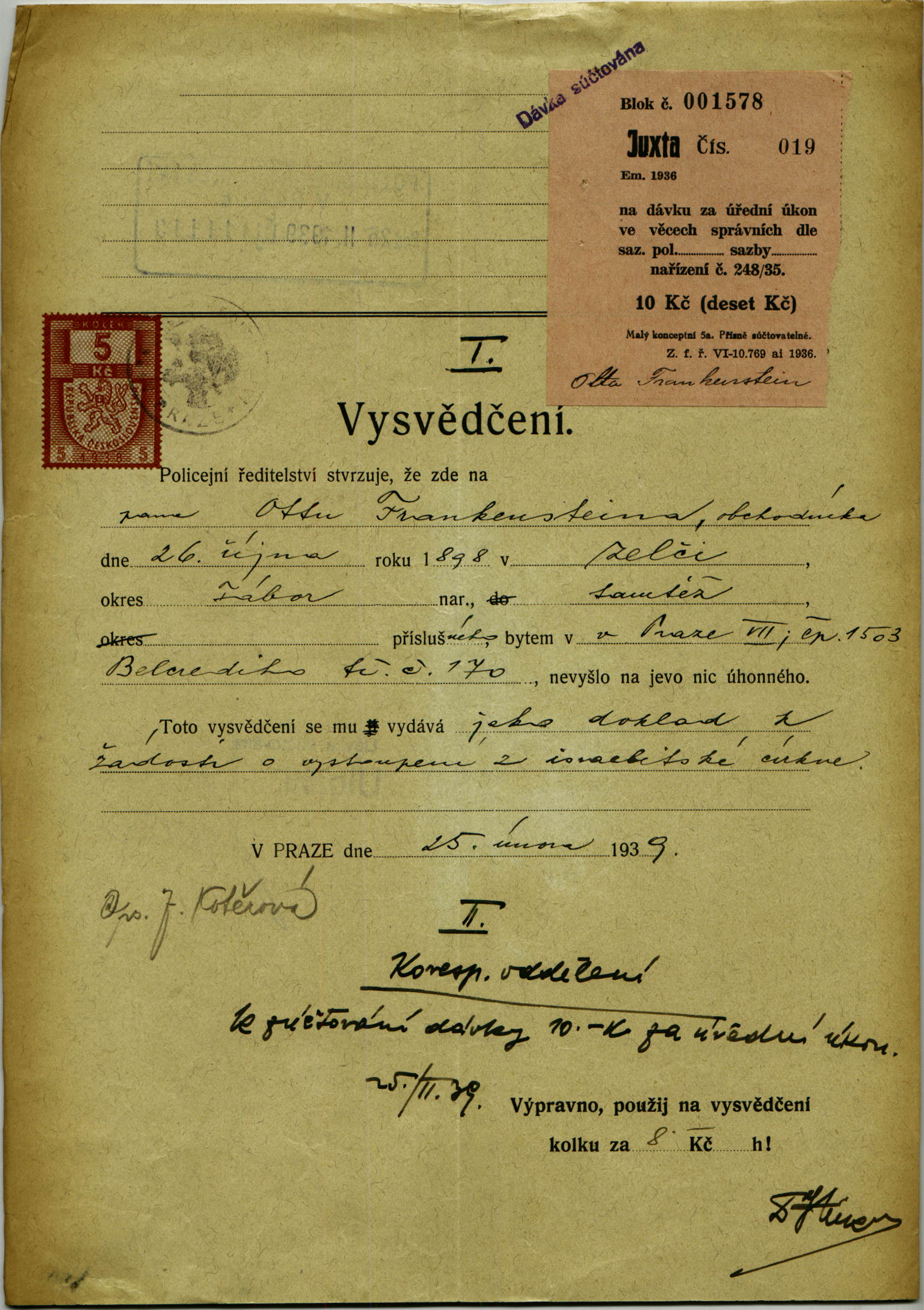 National archives Prague > Police Directorate Prague > 1941-1950 > F > Frankenstein Otto