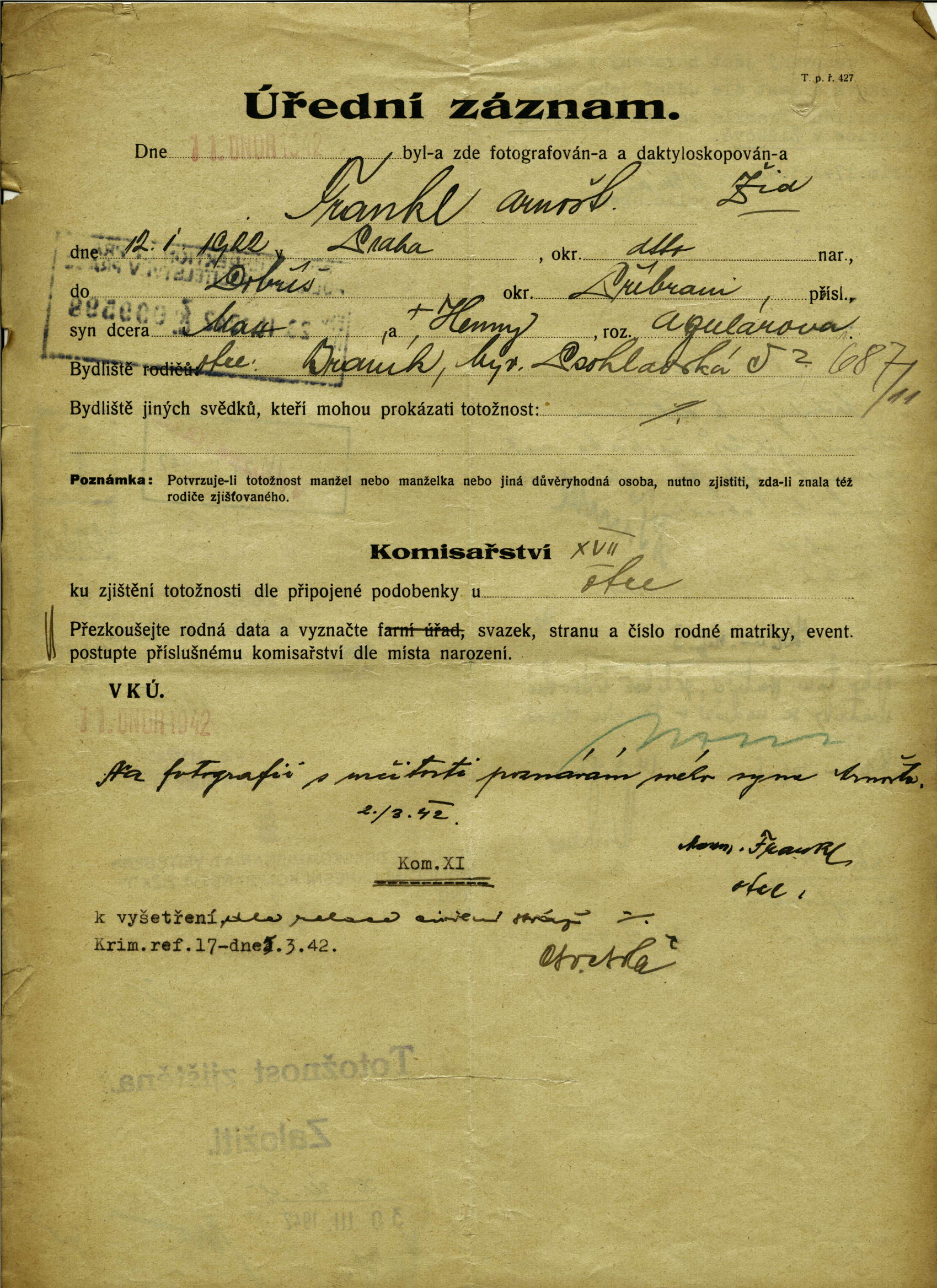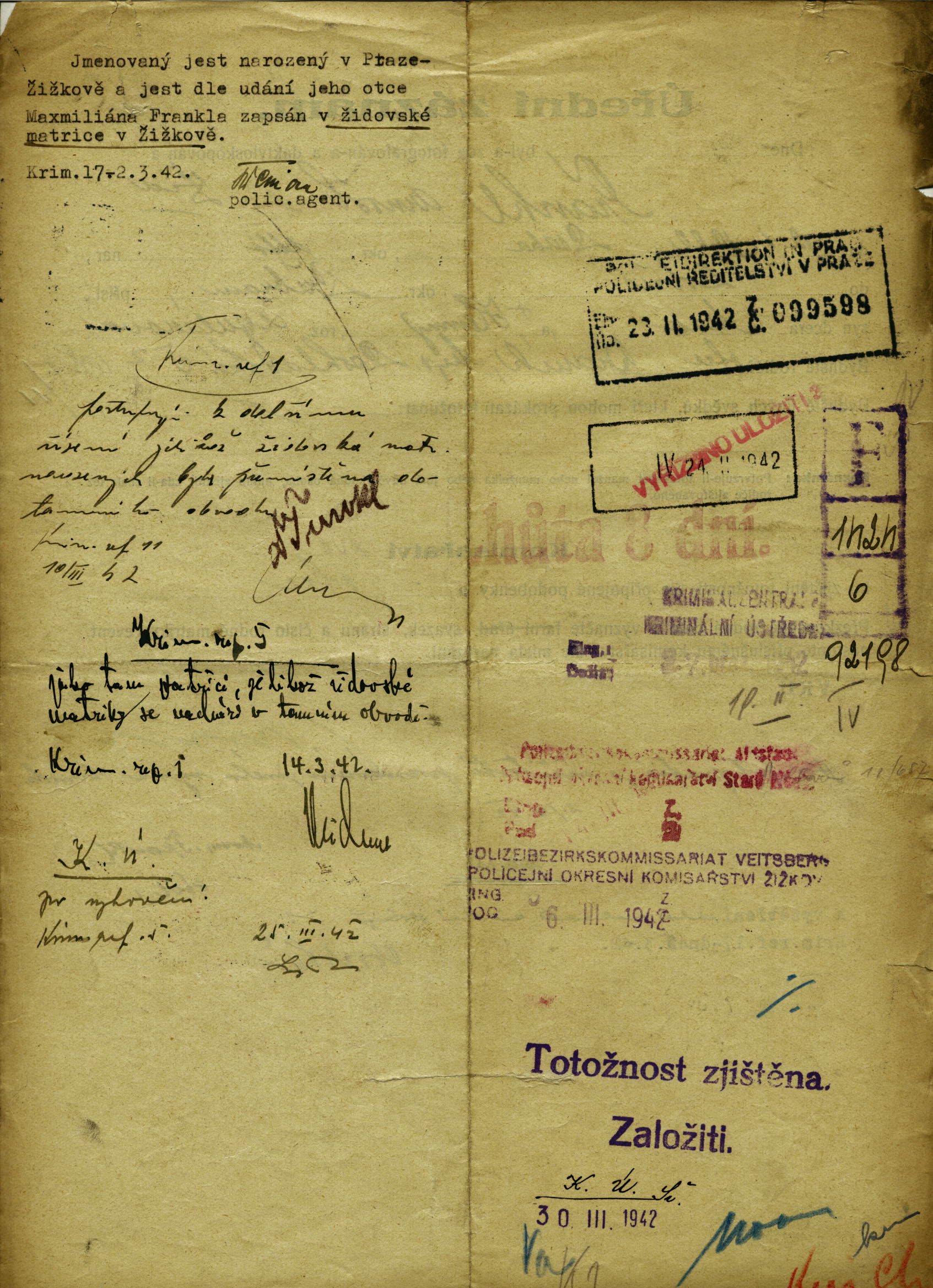 National archives Prague > Police Directorate Prague > 1941-1950 > F > Frankl Arnošt