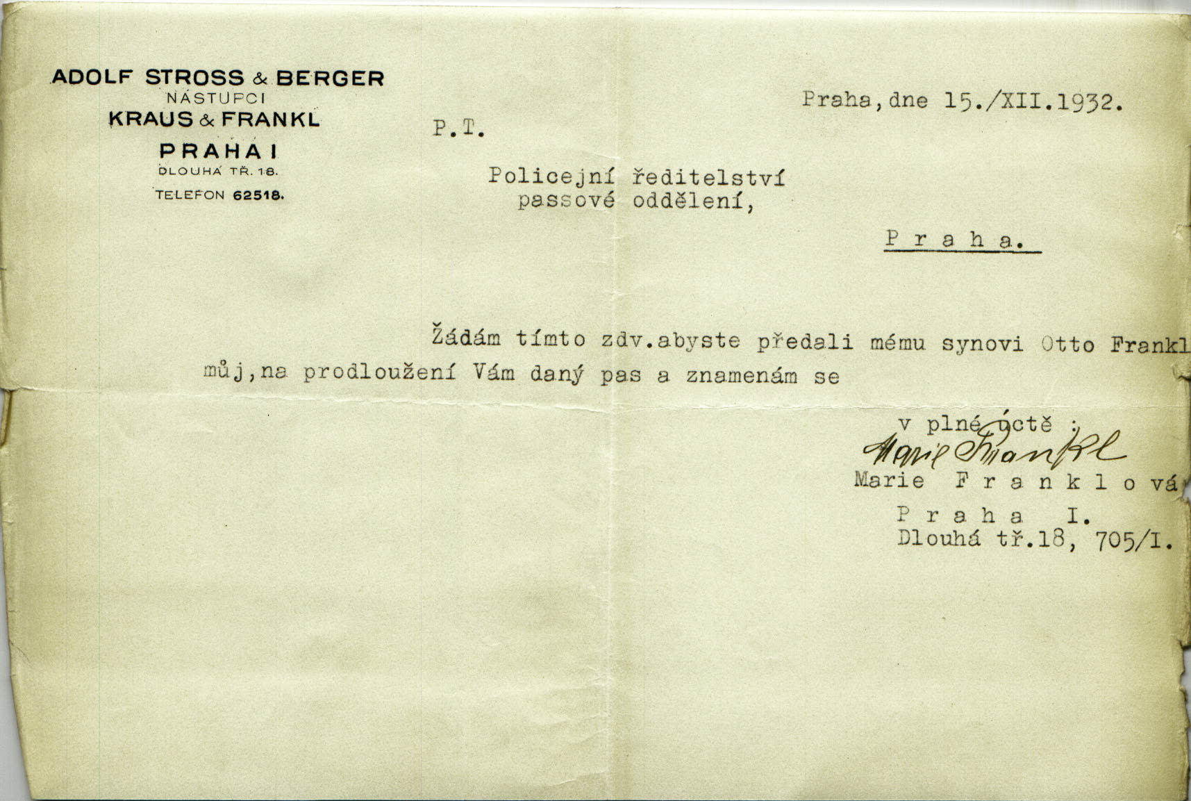 Franklová Marie: Passport application