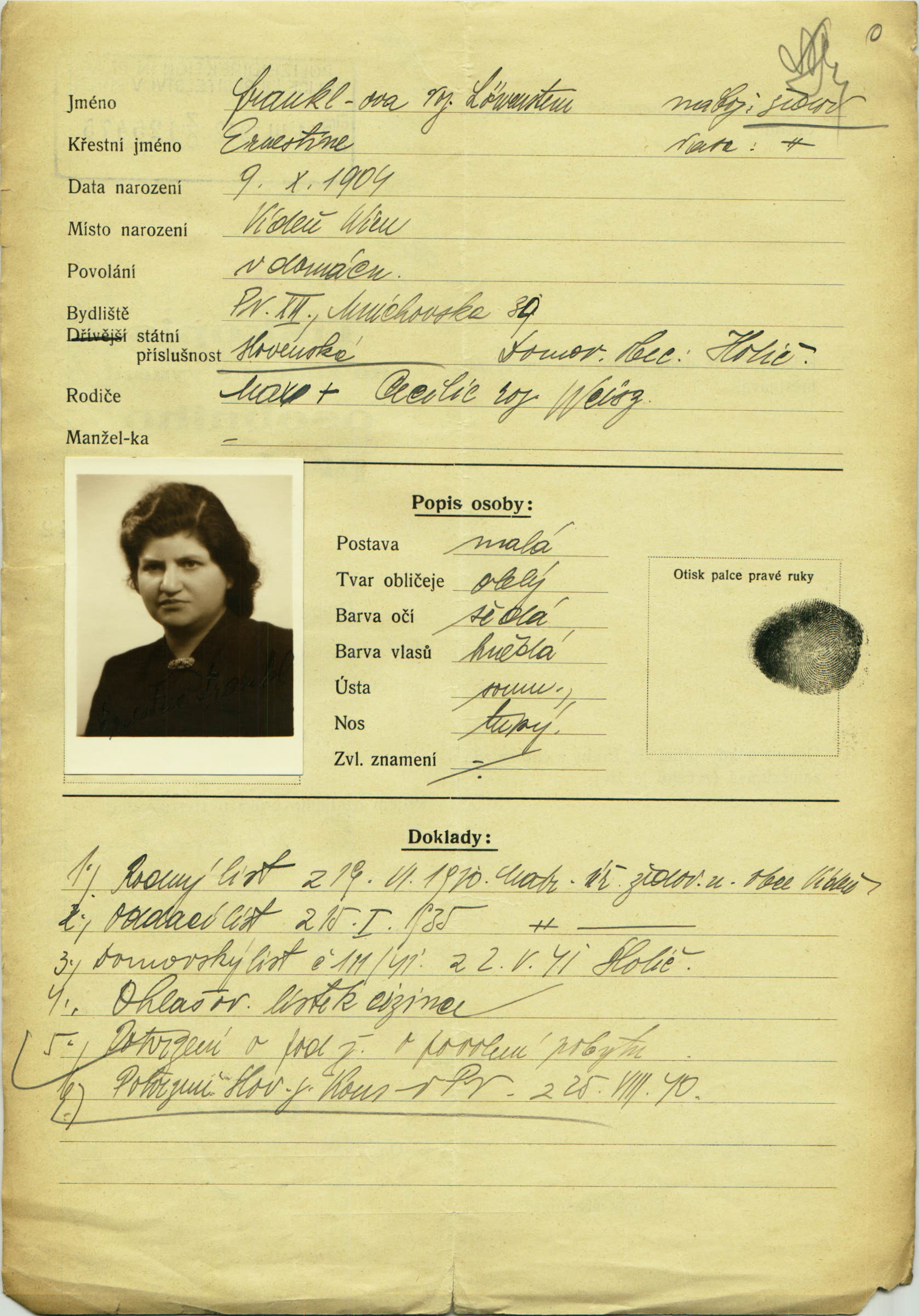 National archives Prague > Police Directorate Prague > 1941-1950 > F > Franklová Arnoštka
