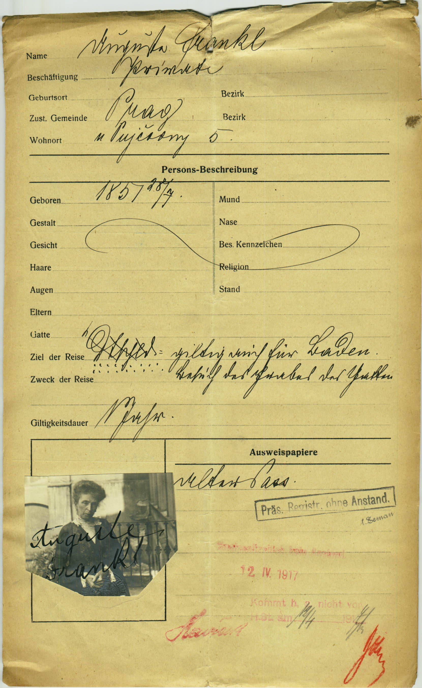 Franklová Augusta: Passport application