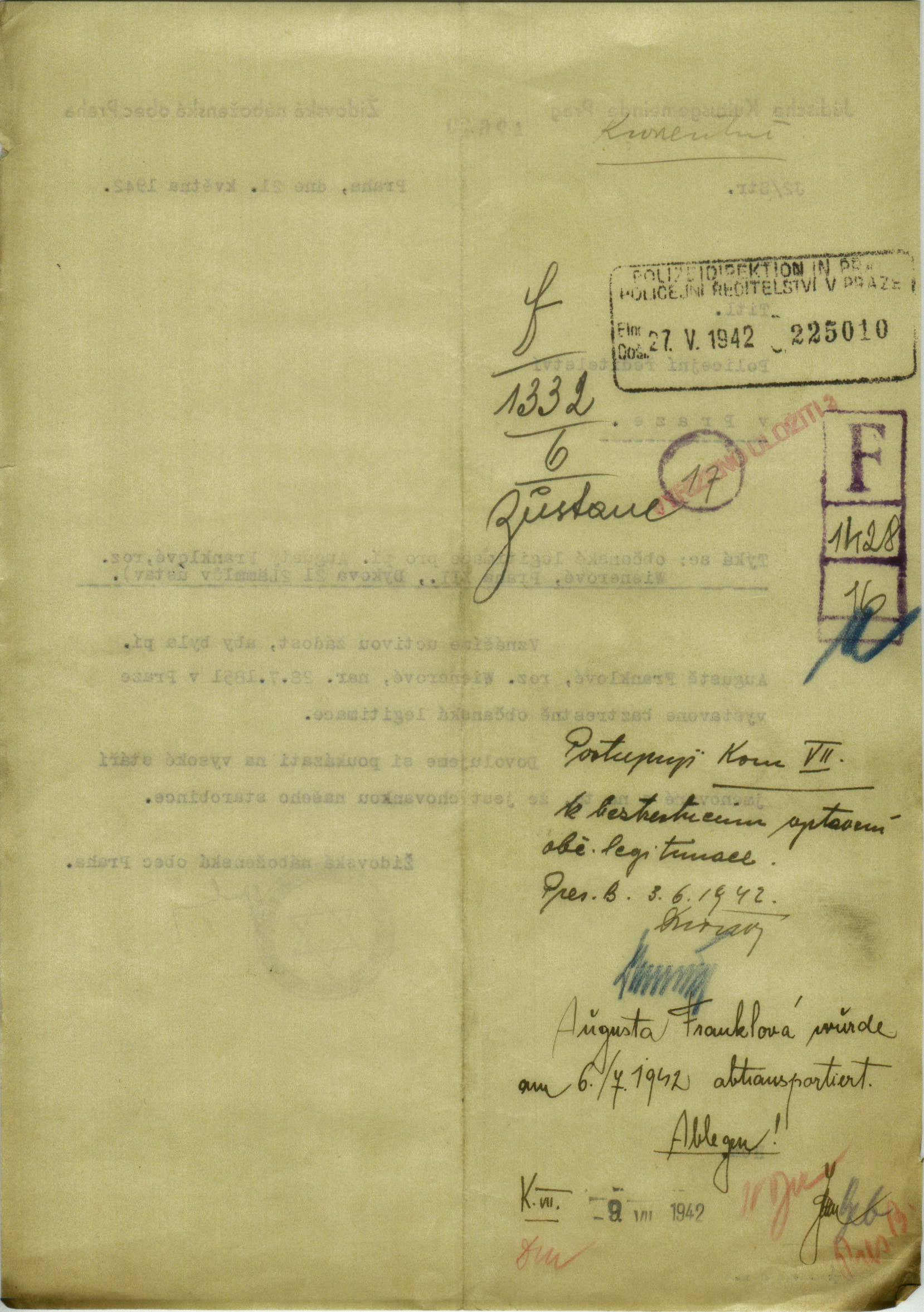 National archives Prague > Police Directorate Prague > 1941-1950 > F > Franklová Augusta