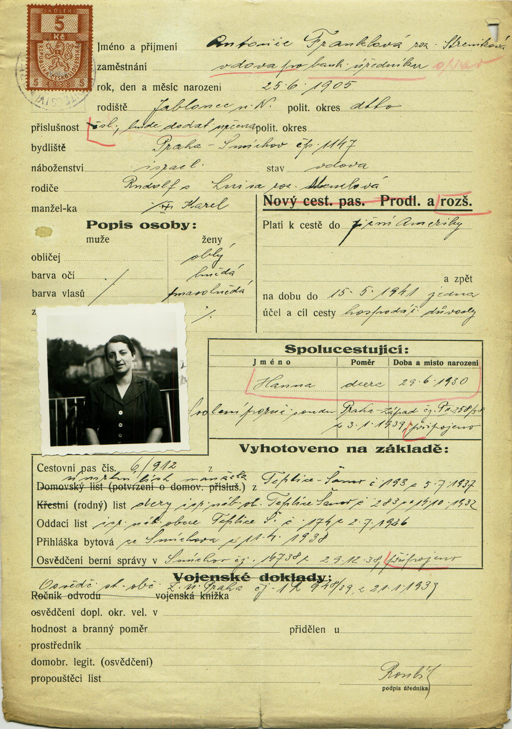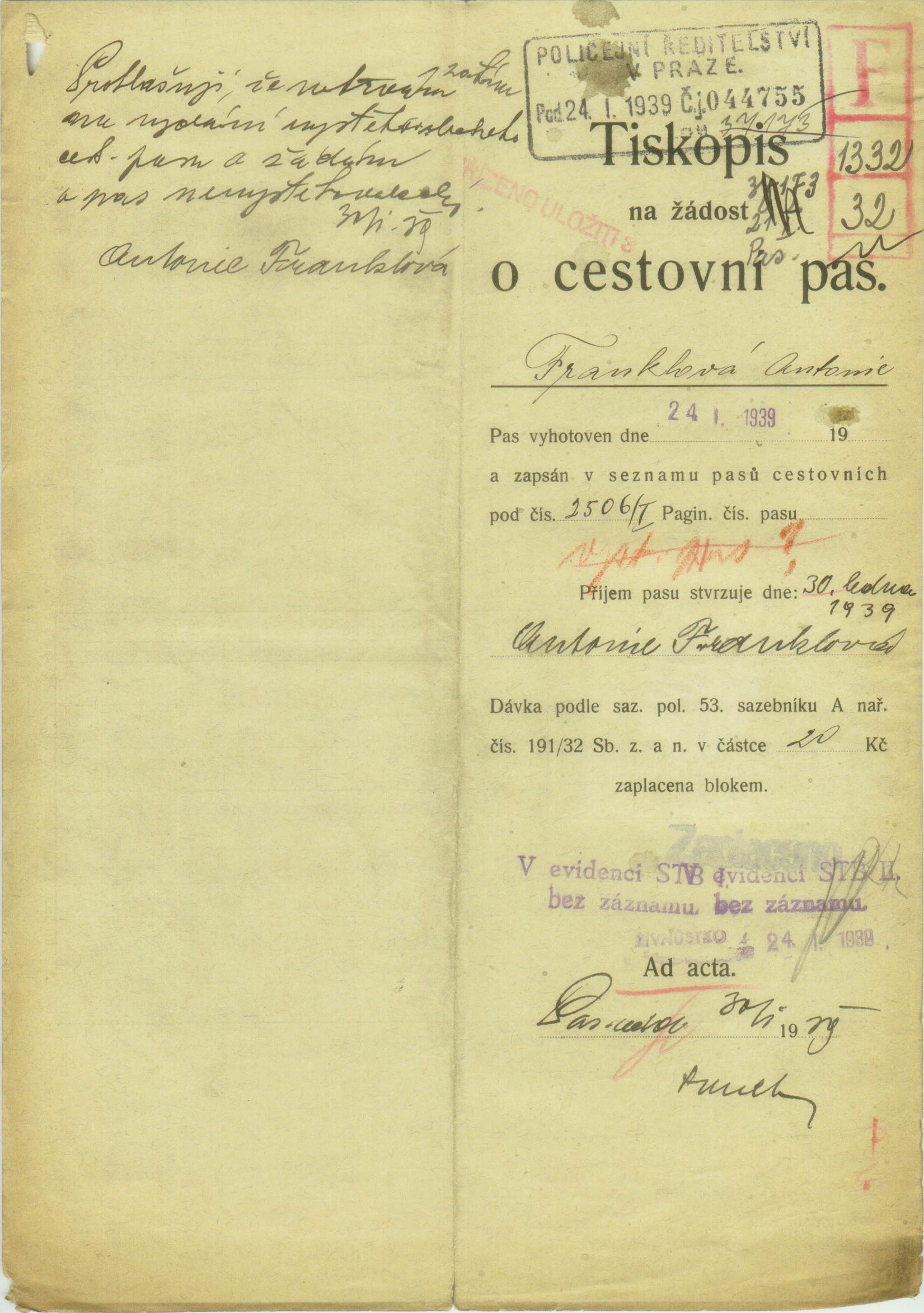 Franklová Antonie: Passport modification application