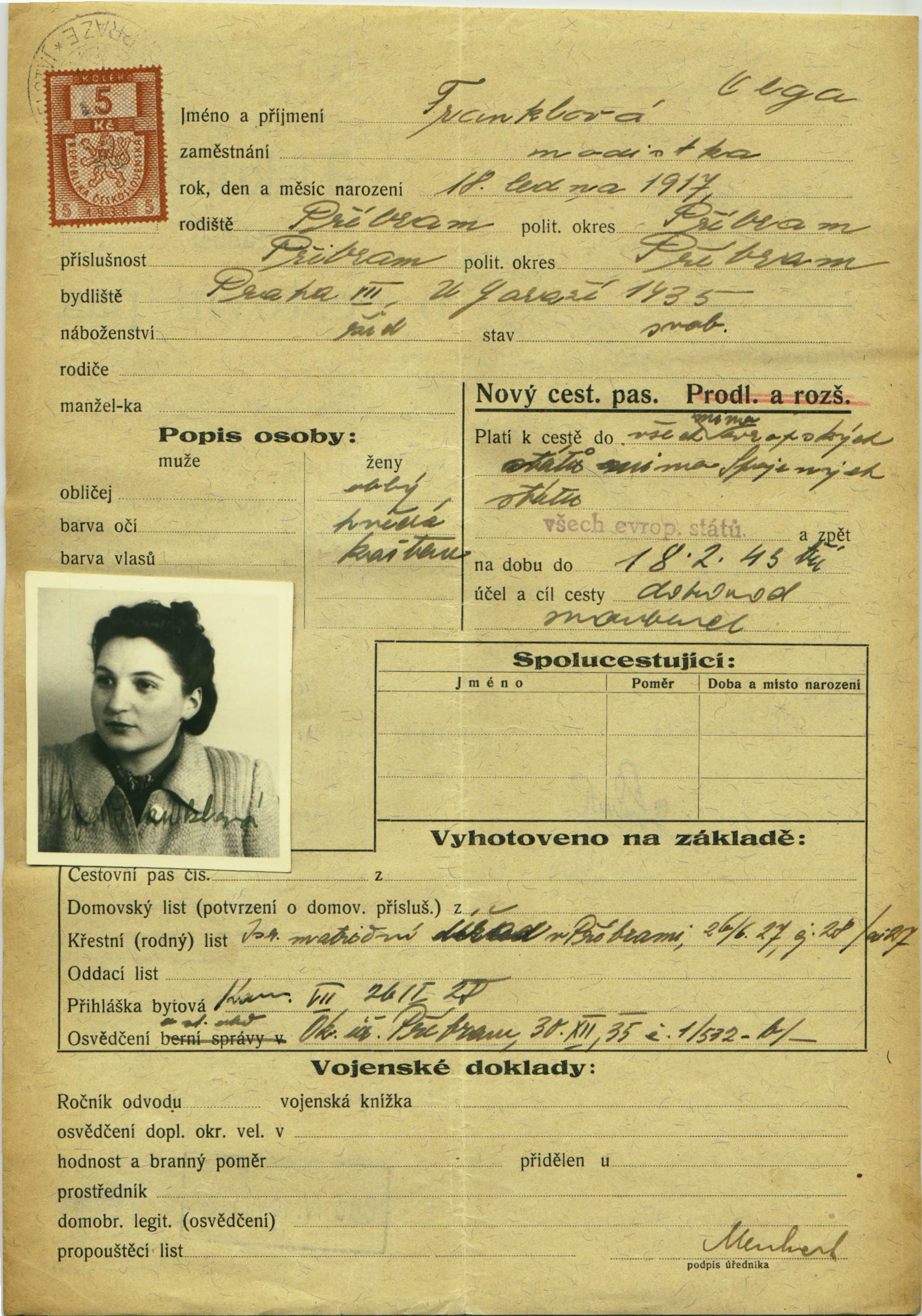 Franklová Olga: Passport application